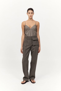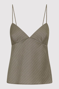 Cut on the bias for a naturally flattering drape, the Bias Cami features a V-neckline, delicate rouleau straps, bust darts and an underbust panel for subtle shaping. A center-back keyhole with button closure adds a refined touch, perfect for effortless warm-weather dressing. DETAILS Materials - 73% Polyester - 21% Lyocell - 5% Linen - 1% Rayon Garment Details - 7/8 length, v-neckline, sleeveless, rouleau straps, bust darts, hip seam detail, side seam invisible zip, asymmetric hem, unlined Manufacturing - SGS Social Audit - Manufacturer has signed the St. Agni Code of Conduct - Responsibly made in China CARE - Cool hand wash - Wash with similar colours - Do not bleach - Do not tumble dry - Cool iron under cloth - Dry cleaning recommended