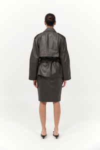 Cropped Leather Trench - Khaki