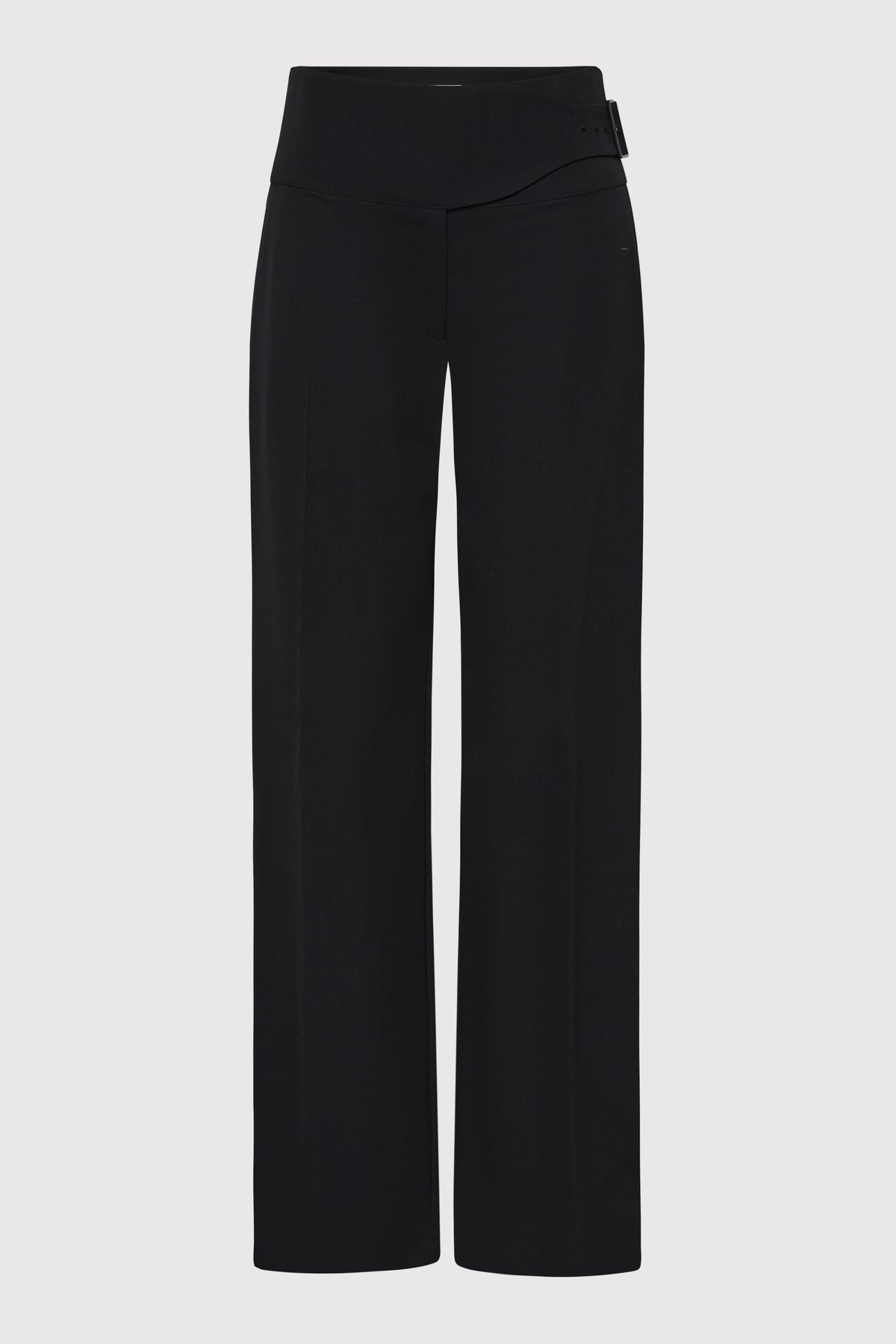 The Cummerbund Pants are tailored for a structured silhouette, crafted from responsibly sourced wool. Sitting mid-rise on the waist, they feature a distinctive cummerbund-style waistband with buckle detail and belt loops. The Cummerbund Pants are a directional staple that redefines classic tailoring with considered detail. DETAILS Materials - 96% RWS Wool - 4% Elastane - RWS Wool Certificate Garment Details - Mid-rise, waistband buckle detail with belt loop, front fly closure, front slash welt pockets, back welt pockets, straight leg, unlined Manufacturing - Fairwear Audit - Manufacturer has signed the St. Agni Code of Conduct - Responsibly made in China CARE - Dry clean only - Do not bleach - Do not tumble dry - Iron on low temperature