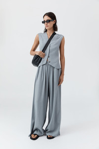 A versatile essential for pared-back dressing, the Everyday Pants offer an easy, wide-leg silhouette with a mid-rise and elasticated waistband. An elevated everyday staple, style them simply with a basic tee or pair as a set with the Minimal Tailored Vest for a coordinated look. DETAILS Materials - 80% Viscose / 20% Rayon - Lining: 100% Lyocell Garment Details - Mid-rise, wide leg, elasticated waistband, front slash pockets, unlined - Relaxed fit Manufacturing - SMETA Sedex Ethical Audit - Manufacturer has signed the St. Agni Code of Conduct - Responsibly made in China CARE - Dry clean only - Do not bleach - Do not tumble dry - Iron on low temperature under cloth