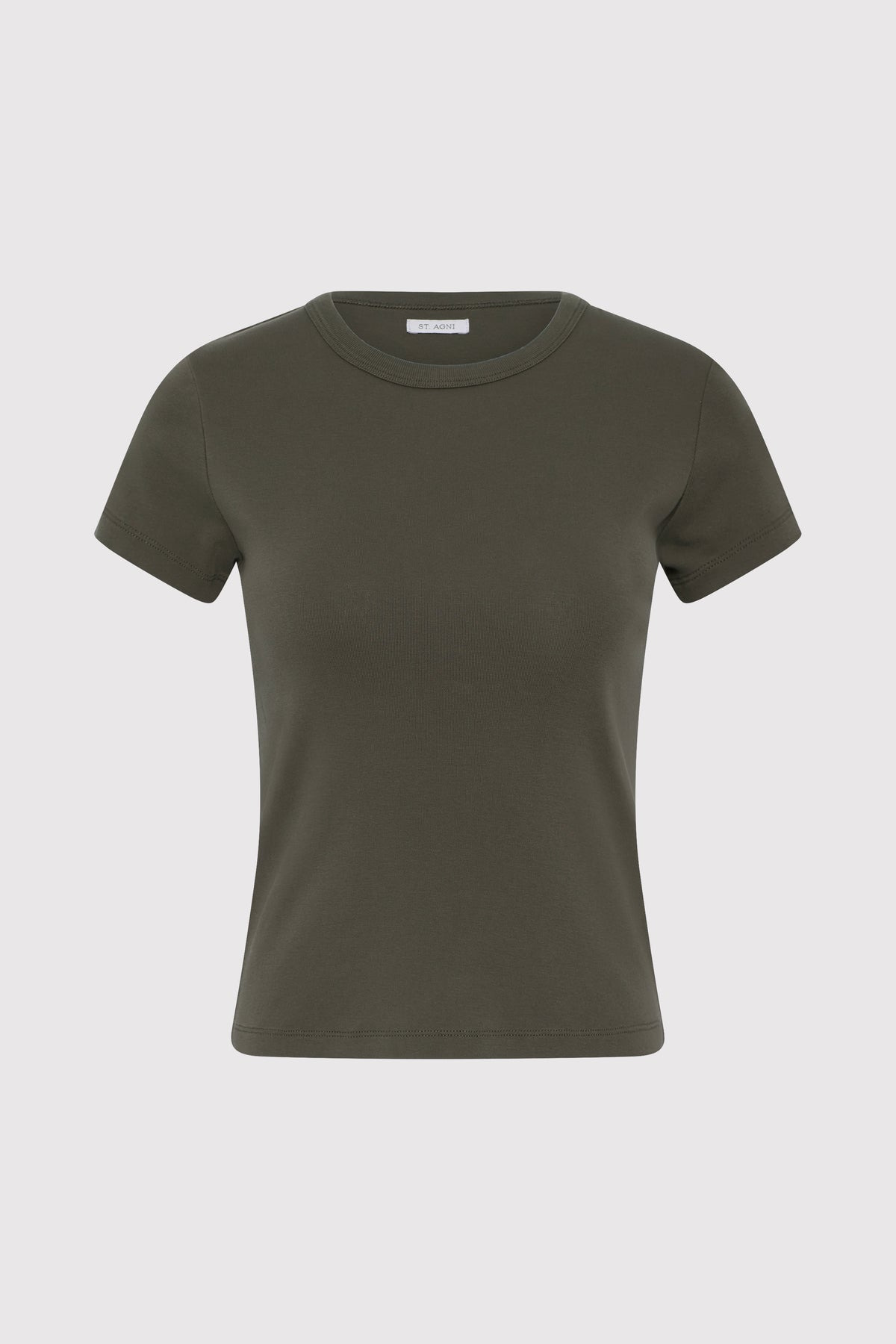 A forever favourite silhouette, the Organic Cotton Baby Tee features a classic crewneck cropped silhouette, short-sleeve design and fitted shape. Easy for everyday wear and crafted from 100% organic cotton for a super soft hand feel. DETAILS Materials - 100% Organic Cotton - Organic Content Standard (OCS) Certificate Garment Details - Crew neck, cap sleeve, waist length - Fitted Manufacturing - SMETA Sedex Ethical Audit - Responsibly made in China CARE - Wash and dry garment turned inside out - Cold hand wash separately - Do not soak - Do not bleach - Do not twist or wring - Do not tumble dry - Dry flat in shade - Cool iron on reverse side - Do not dry clean (X)