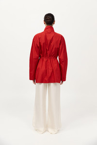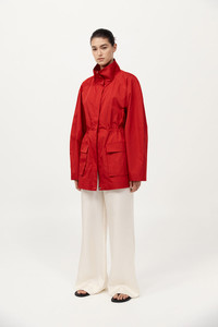 The Paper Taffeta Parka merges function with minimalist design. Featuring a stand collar, centre-front zip and raglan sleeves, its silhouette is adjustable using an internal drawcord waist with toggles. Unlined and lightweight, the Paper Taffeta Parka is ideal for layering in transitional climates. DETAILS Materials - 80% Recycled Polyester - 20% Silk - Recycled Polyester (GRS) Certificate - RWS Wool Certificate Garment Details - Stand collar, center-front zipper with press studs, raglan sleeves, internal drawcord waist with toggle, front flap pockets, unlined Manufacturing - Fairwear Audit - Manufacturer has signed the St. Agni Code of Conduct - Responsibly made in China CARE - Dry clean only - Do not bleach - Do not tumble dry - Iron on low temperature