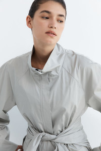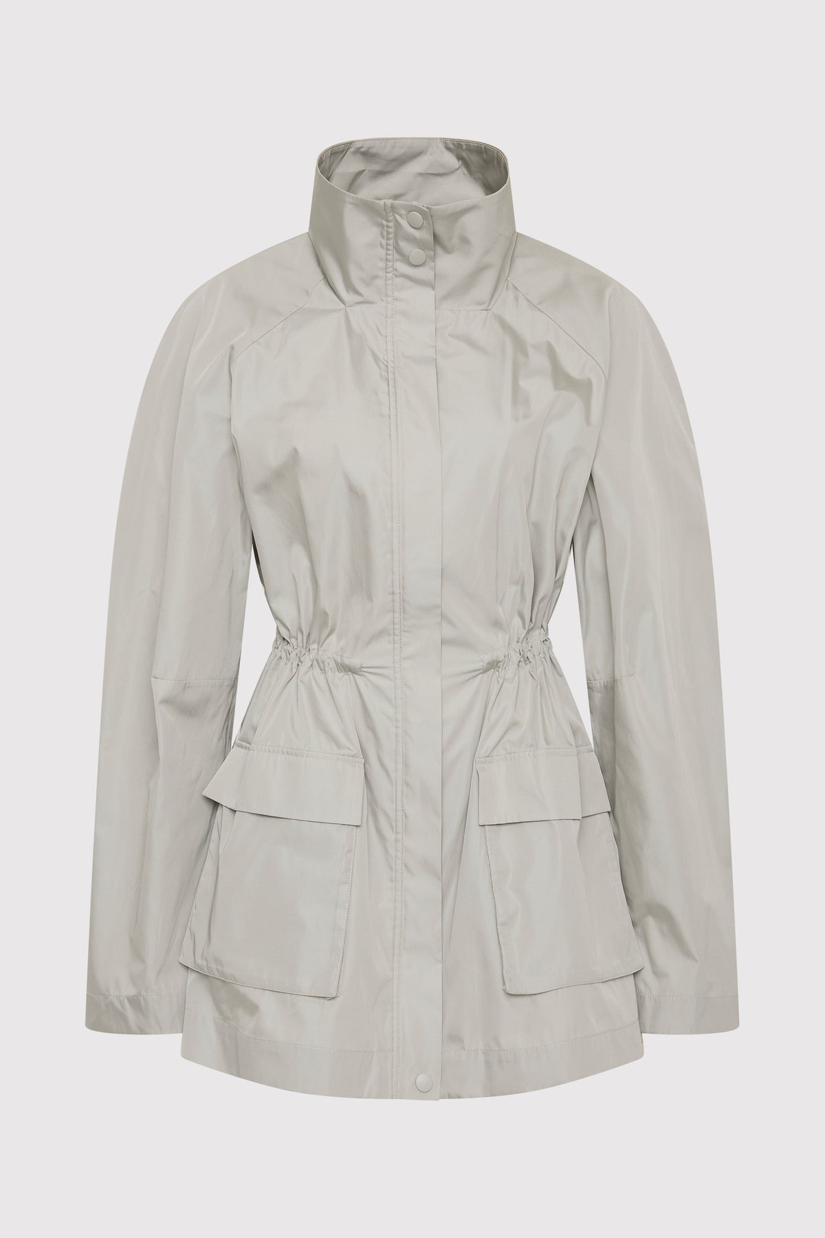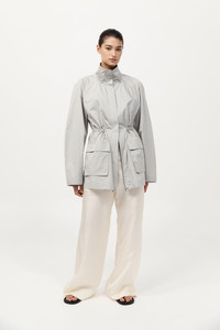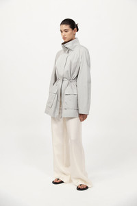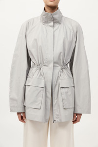 The Paper Taffeta Parka merges function with minimalist design. Featuring a stand collar, centre-front zip and raglan sleeves, its silhouette is adjustable using an internal drawcord waist with toggles. Unlined and lightweight, the Paper Taffeta Parka is ideal for layering in transitional climates. DETAILS Materials - 80% Recycled Polyester - 20% Silk - Recycled Polyester (GRS) Certificate - RWS Wool Certificate Garment Details - Stand collar, center-front zipper with press studs, raglan sleeves, internal drawcord waist with toggle, front flap pockets, unlined Manufacturing - Fairwear Audit - Manufacturer has signed the St. Agni Code of Conduct - Responsibly made in China CARE - Dry clean only - Do not bleach - Do not tumble dry - Iron on low temperature
