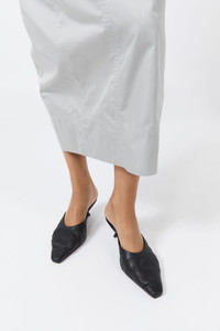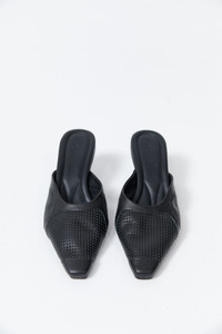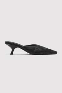The Perforated Heel is textural and architectural in design. With a squared pointed toe and subtle kitten heel, its perforated leather upper is complemented by contrast leather detailing. Finished with a soft padded insole, the Perforated Heel is a versatile style with distinctive appeal. DETAILS Materials - Upper: 100% Calfskin Leather - Lining: 100% Lambskin Leather - Insole: 100% Calfskin Leather - Outsole: 100% Bovine Leather - Leather Working Group (LWG) Certified Garment Details - Kitten heel, squared pointed toe, perforated body with contrast leather design, soft padded insole, curved heel Manufacturing - BSCI Social Audit - Manufacturer has signed the St. Agni Code of Conduct - R - esponsibly made in China SIZING - Heel height: 6cm - Height (including insole): 7cm CARE Natural Leather Protector is recommended before wear. Keep out of direct sunlight to avoid fading and avoid wet weather. Marks and variations in the leather are not considered a fault but are inherent to the natural beauty and uniqueness of the leather. When not in use we advise to store your St. Agni product in its protective bag and to occasionally treat it with a leather conditioner to keep it hydrated.