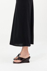 The Soft Thong Contour Wedge seamlessly blends modern design with timeless appeal. Characterised by sinuous lines and sculptural shapes, featuring thong straps, a square toe and a curved wedge heel. Offering a sleek, minimalist aesthetic that exudes understated refinement, the Soft Thong Contour Wedge is perfect for elevating any ensemble. DETAILS Materials - Upper: 100% Calfskin - Insole: 100% Calfskin - Outsole: 100% Rubber - Chrome Free Dyed - Leather Working Group (LWG) Certified Garment Details - Lambskin thong upper, curved shape wedge Manufacturing - Manufacturer has signed the St. Agni Code of Conduct - BSCI Social Audit - Made responsibly in China CARE Natural Leather Protector is recommended before wear. Keep out of direct sunlight to avoid fading and avoid wet weather. Marks and variations in the leather are not considered a fault but are inherent to the natural beauty and uniqueness of the leather. When not in use we advise to store your St. Agni product in its protective bag and to occasionally treat it with a leather conditioner to keep it hydrated.