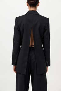 The Split Back Blazer delivers a tailored silhouette with unexpected detail. Featuring a structured single-breasted profile, shoulder pads and notched lapels, softened by a split back hem and internal waist tie. A modern interpretation of classic suiting. Pair with the Tailored Active Pants for a coordinated look. DETAILS Materials - 50% RWS Wool - 50% Recycled Polyester - Lining: 100% Lyocell - RWS Wool Certificate - Recycled Polyester (GRS) Certificate Garment Details - Single breasted, notched lapels, shoulder pads, front flap pockets, centre-back split detail, internal waist tie, buttoned cuffs, lined Manufacturing - SMETA Sedex Ethical Audit - OEKO-TEX 100 Certification - Responsibly made in Vietnam CARE - Dry clean only - Do not bleach - Do not tumble dry - Iron on low temperature