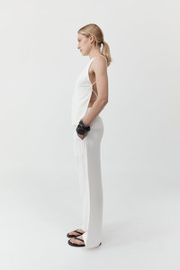 Minimal and refined, the Square Backless Top features a high square neckline and a barely-there open back, finished with an adjustable strap for a custom fit. A statement in subtlety, the Square Backless Top pairs perfectly with the Wide Waistband Pant for a clean, considered ensemble. DETAILS Materials - 72% Lenzing Viscose - 25% Linen - 3% Nylon - LENZING™ Certificate - European Flax Certificate Garment Details - Square neckline, sleeveless, thin straps, bust darts, open back, back tie detail with buckle fastening, lined Manufacturing - SMETA Sedex Ethical Audit - OEKO-TEX 100 Certification - Responsibly made in China CARE - Dry clean only - Do not soak - Do not bleach - Do not tumble dry - Iron on low temperature