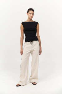The Tailored Track Pants offer a relaxed silhouette, crafted from a recycled nylon and organic cotton blend. Designed with a mid-rise waist, adjustable drawstring and contrast piping detail, the Tailored Track Pants blend casual ease with refined tailoring. A modern staple for elevated everyday wear. DETAILS Materials - 70% Recycled Nylon - 30% Organic Cotton - Recycled Polyester (GRS) Certificate - Organic Content Standard (OCS) Certificate Garment Details - Mid-rise, drawstring waist, contrast piping detail, front fly closure, side-front welt pockets, back welt pockets, relaxed leg, unlined Manufacturing - OEKO-TEXT 100 Certification - Fairwear Audit - Manufacturer has signed the St. Agni Code of Conduct - Responsibly made in China CARE - Cool gentle machine wash - Wash with similar colours - Do not bleach - Do not tumble dry - Iron on low temperature