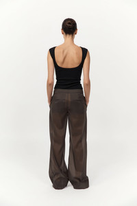 The Tailored Transparent Pants offer a fluid silhouette, designed with a mid-rise waist, straight-slim leg, and subtle tailoring details. Intended for layering over the Tailored Brief or beneath a skirt or dress, they serve as a trans-seasonal staple that adds a distinctive edge to considered styling. DETAILS Materials - 49% Silk - 42% Nylon - 9% Spandex Garment Details - Mid-rise, front fly with hook & bar, front slash pockets, rectangle pocket bags, back welt pockets, back darts, straight-slim leg, sheer, unlined Manufacturing - SMETA Sedex Ethical Audit - Responsibly made in China CARE - Cold hand wash with like colour - Drip to dry in shape - Do not tumble dry - Do not bleach - Cool iron on reverse or use a pressing pad - Dry clean (P)