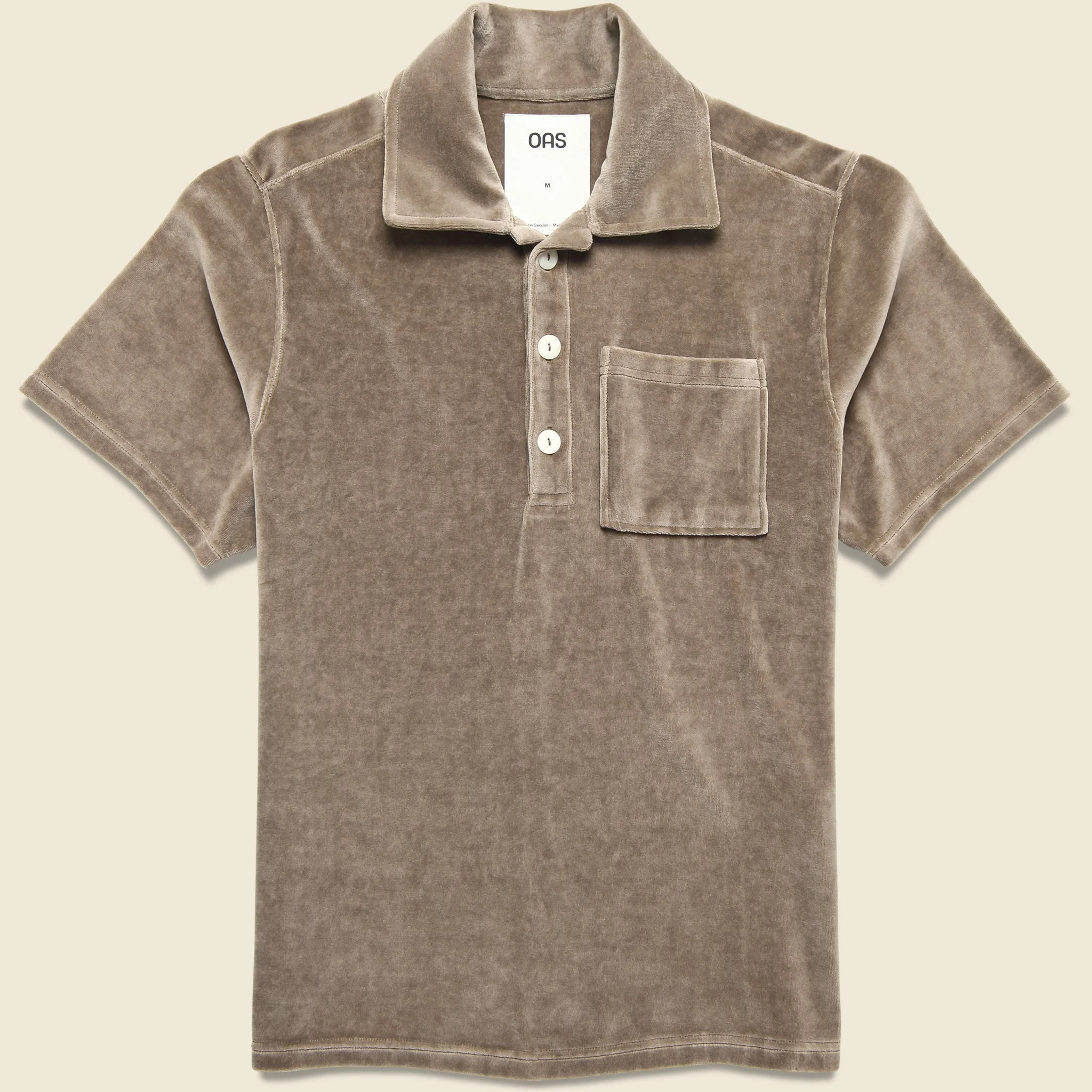 The Morel Girona Velour Shirt from OAS is made with an incredibly soft, cotton-poly blend velour that’s perfect for warm, sunny summer days. It’s tailored with a relaxed fit that runs true to size and comes with a simple, three-button polo-style placket, a spread collar, and a straight hem with side vents for a casual finish. - Midweight cotton-poly blend - Ultra-soft velour texture - Simple 3-button polo placket - Spread collar - Straight hem - Relaxed fit that runs true to size - We recommend taking your normal size Made in Portugal Materials: 80% cotton, 20% polyester The following measurements are for size Medium: Chest: 45” | Shoulder: 18” | Sleeve: 19” | Length: 27 ½”