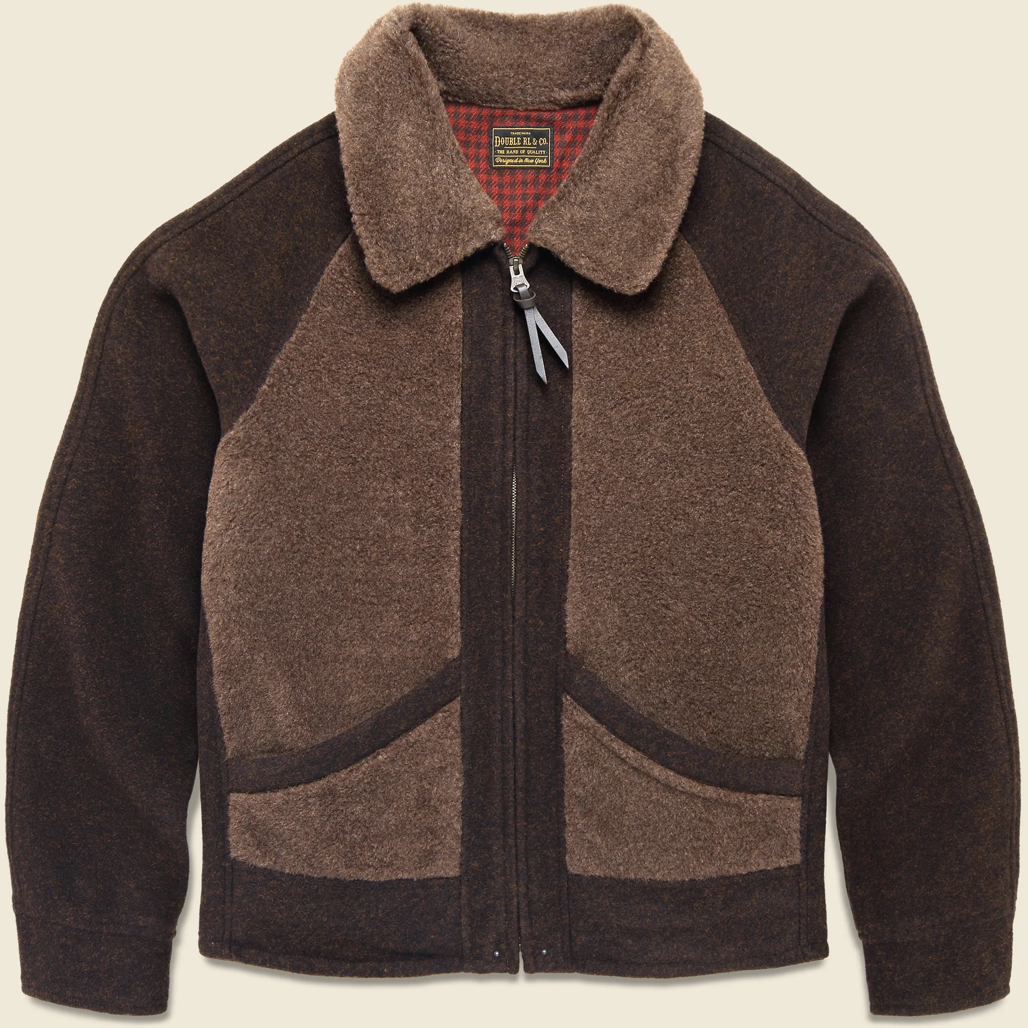 This Grizzly Jacket is inspired by a vintage piece from the Double RL archives and features a warm combination of double-knit wool-blend jacquard and high-pile fleece at the collar and body panels to provide ample warmth through the cooler months ahead. It’s tailored with a perfectly relaxed fit that runs true to size and comes fully lined with a checked cotton flannel, comfortable raglan sleeves, a pair of handwarmer pockets, and a custom-developed brass zip closure to seal things up. - Double-knit wool-blend jacquard - High-pile fleece panels and collar - Soft cotton flannel lining through the body - Poly-lining through the sleeve - Two handwarmer pockets - Single interior chest pocket - Custom-developed zip closure - Relaxed fit that runs true to size - We recommend taking your normal size Materials: Shell: 66% wool, 34% polyester | Front body & collar: 75% wool, 25% polyester | Body lining: 100% cotton | Sleeve lining: 100% polyester The following measurements are for size Medium: Chest: 43” | Shoulder: 18” | Sleeve: 33” | Length: 25 ½”