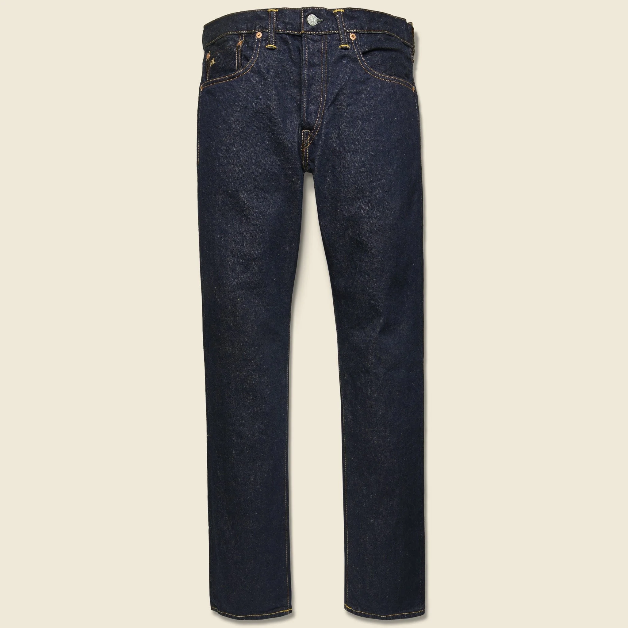 These classic medium weight, slim fit jeans are made in America from Double RL's exclusive 15.9oz. Japanese selvedge denim. They've been woven on a traditional narrow shuttle loom with a deep indigo yarn that’s treated for a dried-in-the-sun effect & feature RRL's signature slim fit with medium-low pitched waist, slim thigh, and lower leg. These jeans run true to size so we recommend taking your normal waist size. - 16oz Japanese sanforized selvedge denim - 1960s-inspired jean designed with slim, straight leg openings - Gold tinted weft - Hand-set chain-stitched waistband with inserted belt loops for added durability - Button fly with a RRL signature shank closure ensures a consistent fit through years of wear - American-made copper-tone shanks, rivets, and washer burrs - Five-pocket styling - Selvedge coin pocket with "RRL" embroidery - Heavy twill pocket lining - "RRL"-debossed roughout-leather logo label at the back right waist - Slim fit with medium-low pitched waist, slim thigh, and lower leg - We recommend taking your normal waist size - Made in USA - Materials: 100% cotton The following measurements are for size 32: Waist: 34" | Rise: 11" | Inseam: 34.25" | Thigh: 12" | Leg Opening: 15" Model is 6' and is wearing a size 32