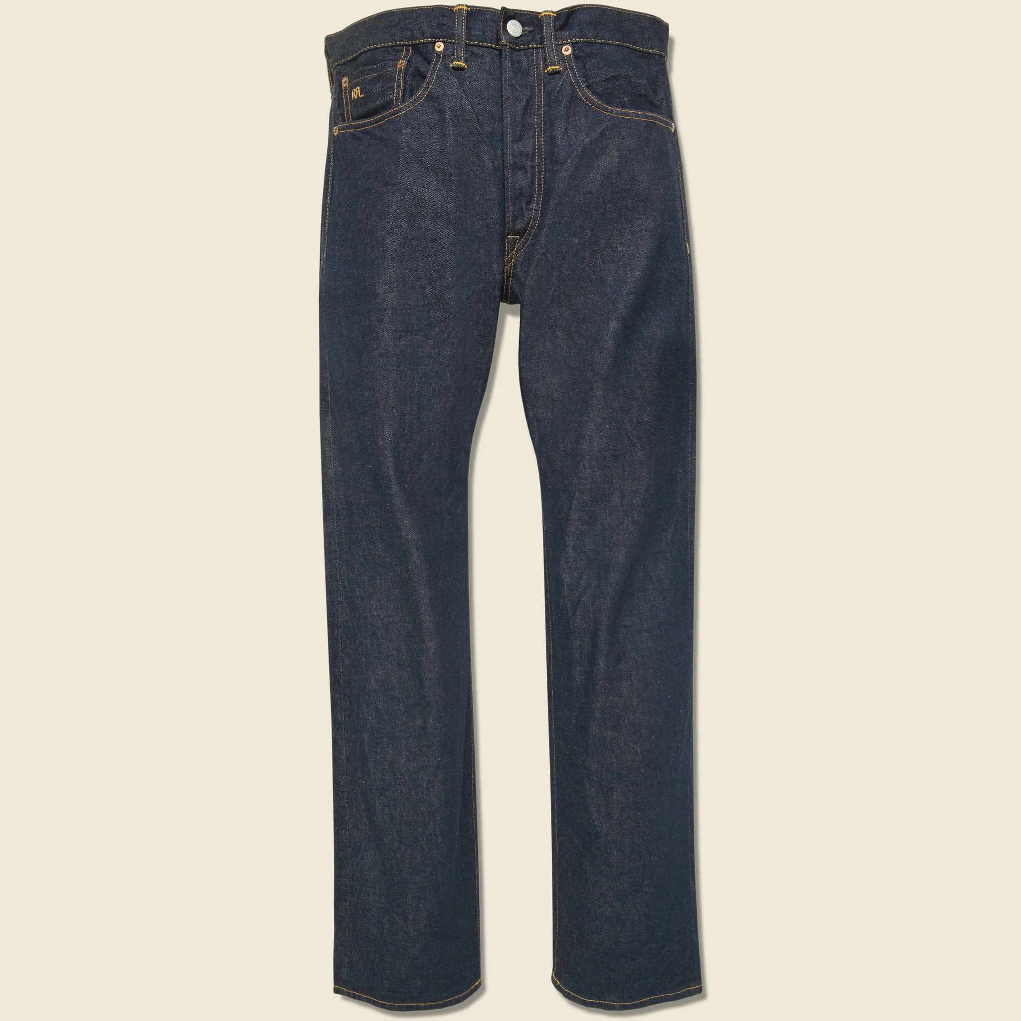 These Straight Fit Jeans from Double RL are made from sturdy 13.75oz, Japanese selvedge denim that features an exclusive dark-indigo finish to uniquely age through wash and wear. They have a classic straight-leg fit that runs true to size and feature a 5-pocket construction inspired by styles from the late 1960s. They've been Sanforized to minimize shrinkage. - Sturdy 13.75oz selvedge denim from Japan - Exclusive RRL dark indigo wash - Clean-water rinse & bake-dried - Classic 5-pocket construction - “RRL” debossed label at the back right waist - Button fly - Medium rise - Straight fit through the thigh and leg - We recommend taking your normal size Made in USA Materials: 100% cotton The following measurements are for Size 32: Waist: 32” | Inseam: 32” | Thigh: 11” | Leg opening: 16” | Rise: 11”