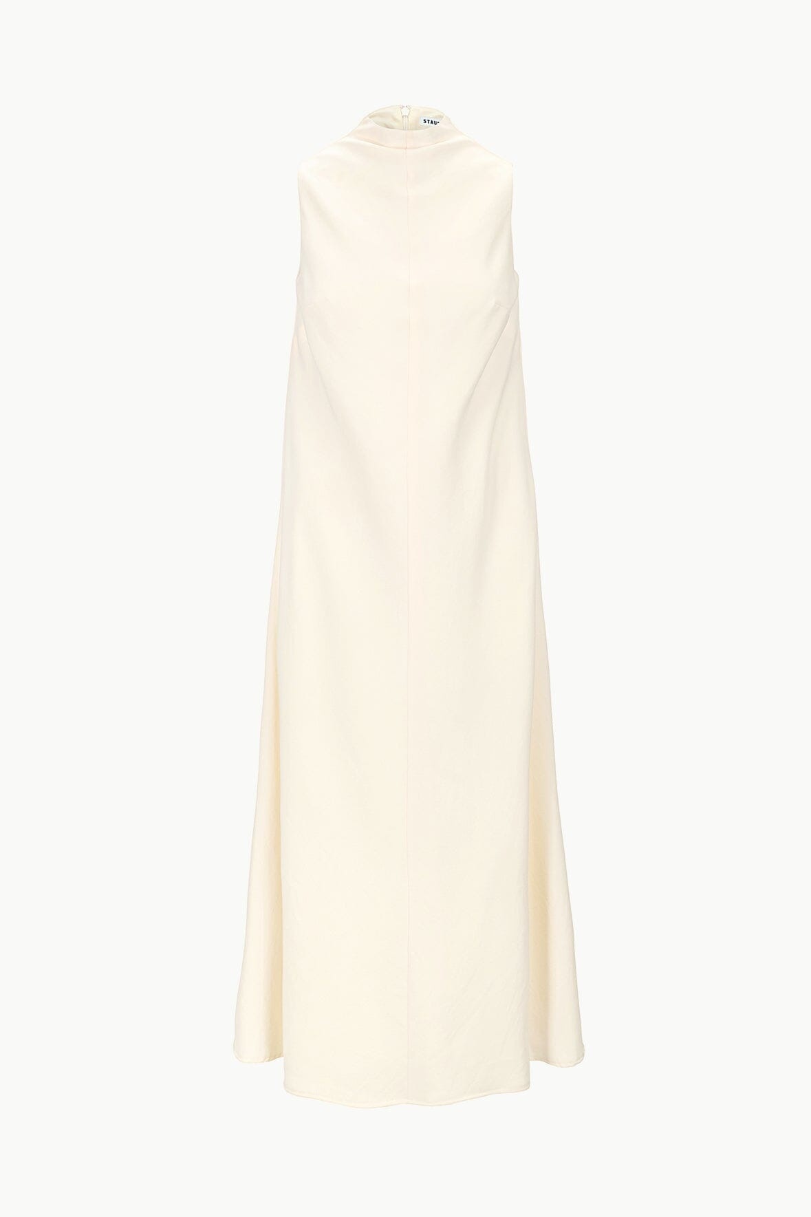 The Araya Dress is crafted from a drapey crepe fabric and features a funnel neckline and maxi length A-line skirt. MORE DETAILS - 70% Acetate, 30% Polyester - Model is 5'10 and wearing a size S - Dry Clean Only
