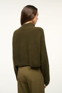 STAUD CASHMERE CROPPED HAMPTON SWEATER OLIVE
