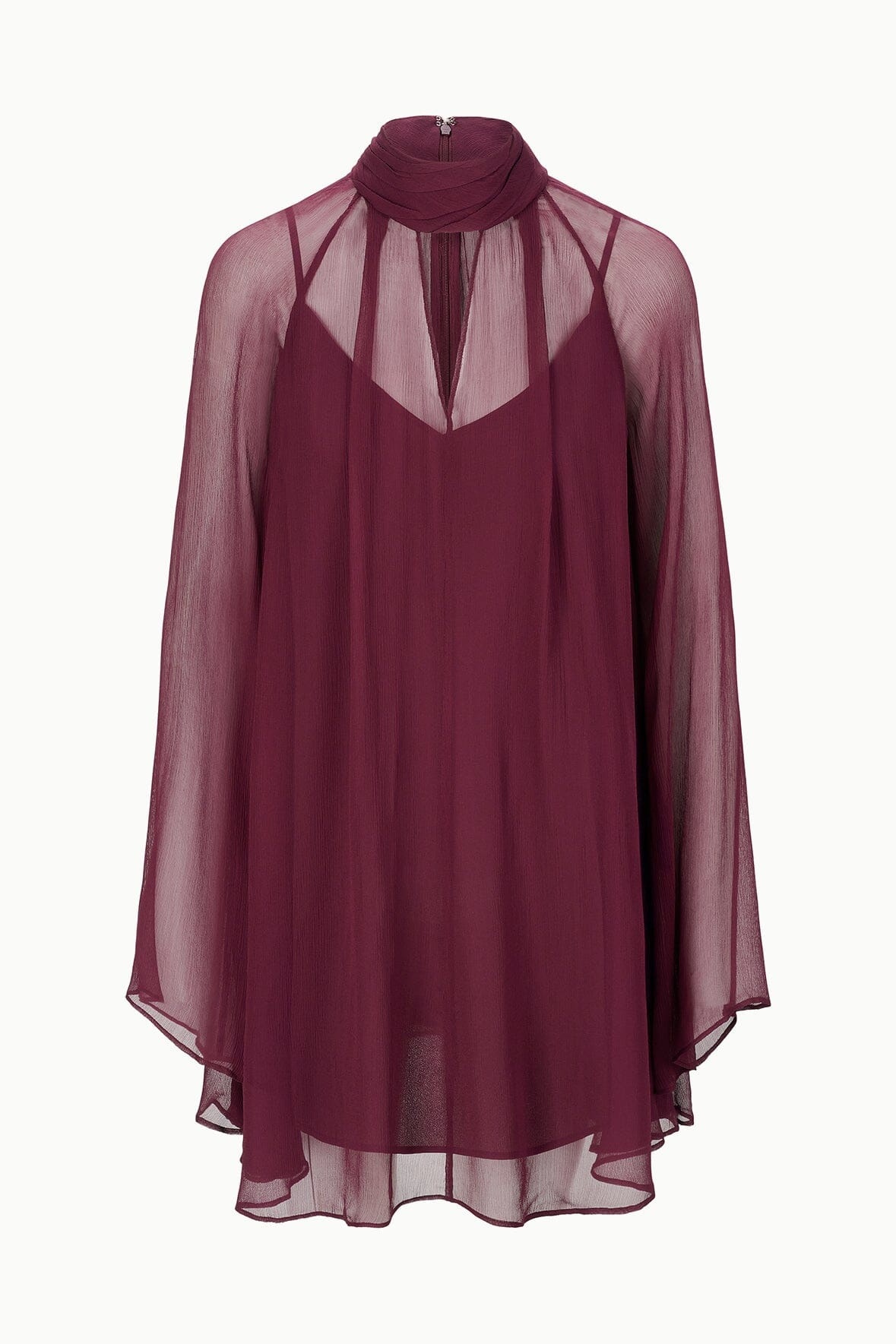 The Esther Mini Dress is a long sleeve flowy mini dress featuring a sheer chiffon overlay, a keyhole cutout, and a scarf neck tie feature. MORE DETAILS - Self: 100% Viscose, Lining: 100% Polyester - Model is 5'10 and wearing a size S - Dry Clean Only