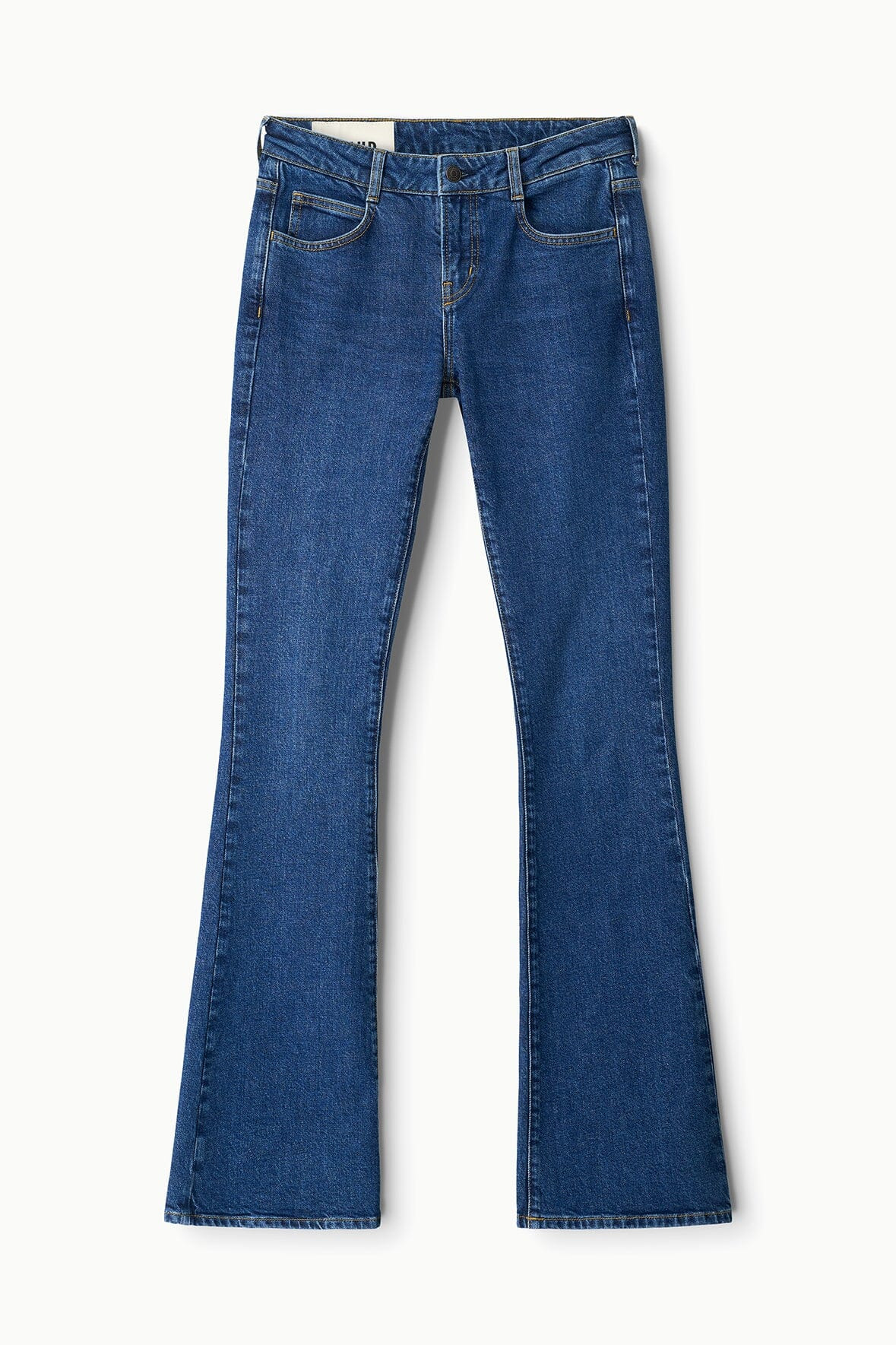 The Kyle Jean is a flattering, ‘90s-inspired silhouette with a low-rise waist and cinching V-shaped yoke at the back. Cut from denim with a hint of stretch, its shape contours the hips and thighs, then falls to a dramatically flared leg. Complete with antique-finish hardware and logo-embroidered zip fly. MORE DETAILS - Fabrication: 99% Cotton, 1% Elastane Stretch Denim - Denim Weight: 13oz - Care: Machine wash cold, inside out. Lay flat or hang to dry. - Model is 5'10 and wearing a size 25 with a 34" inseam. - Rise: Low - Inseam Options: 34” - Fit: Fitted & flared