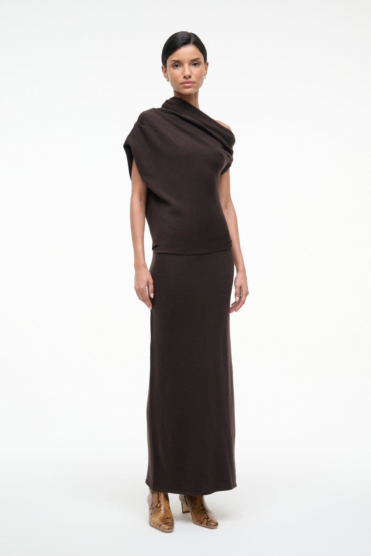 The Mable Dress is a new sweater dress silhouette. Knit in soft merino wool, the Mabel offers an asymmetrical off the shoulder sleeve and delicate draping throughout the body. MORE DETAILS - 100% Merino Wool - Model is 5'10 and wearing a size S - Dry Clean Only