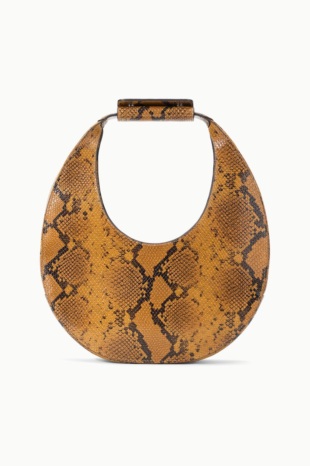 The Moon Bag is a crescent moon shaped tote with a curved handle with removable STAUD-embossed accent. This style features an inner suede lining and a magnetic clasp closure to hold your essentials; can be worn handheld or over the shoulder. MORE DETAILS - Moon Bag in Embossed Snake - Self: 100% Cow Leather