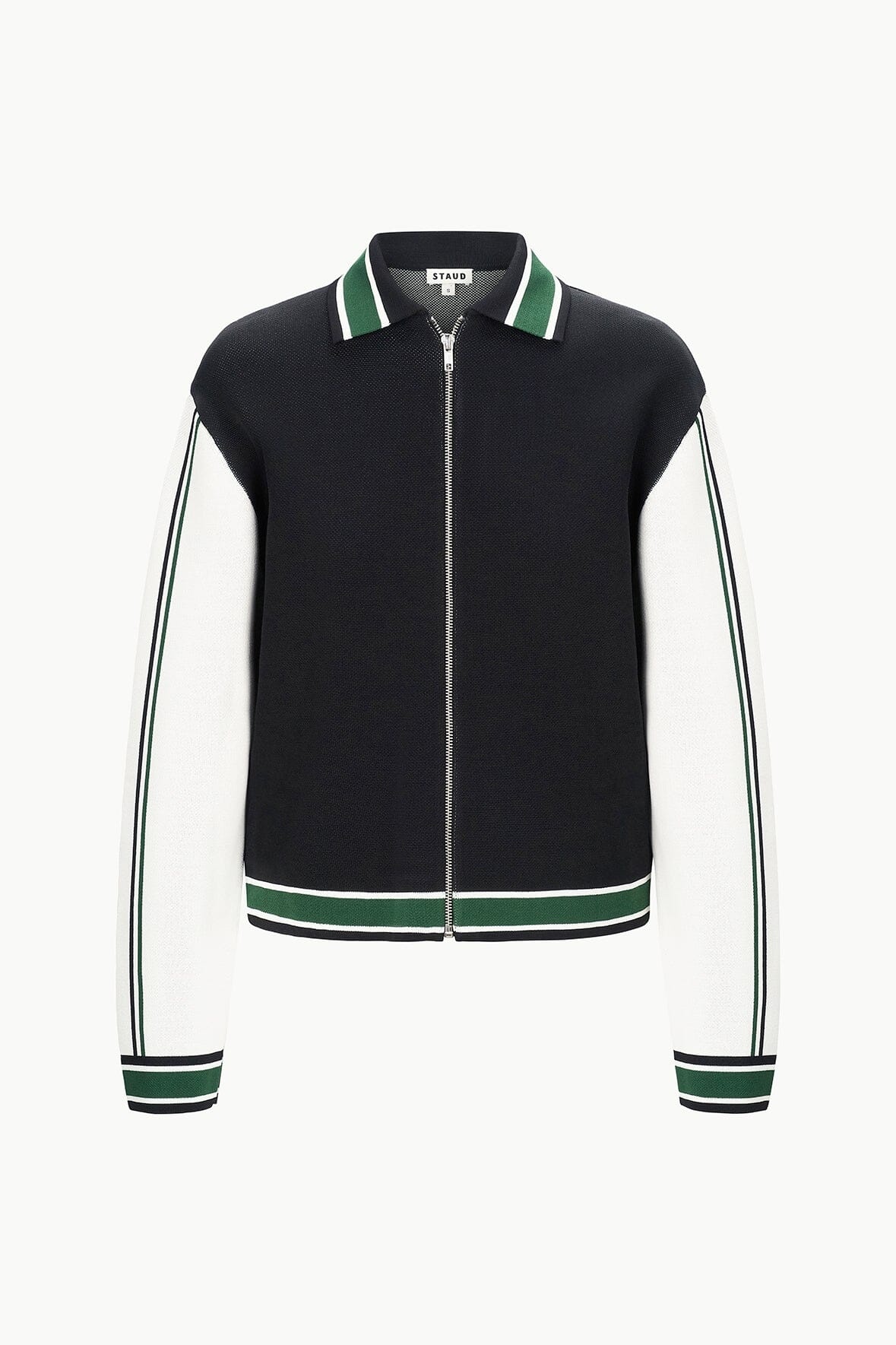 Fashioned after a vintage letterman jacket, the Pat Sport Jacket is made from a fully knit jacquard featuring a logo back and branded details. MORE DETAILS - 65% Viscose, 35% Nylon - Model is 5'10 and wearing a size S - Hand Wash Cold. Lay Flat to Dry.