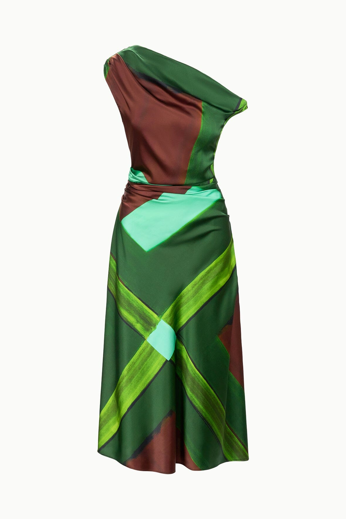 STAUD PHARE SILK DRESS EMERALD PRISM