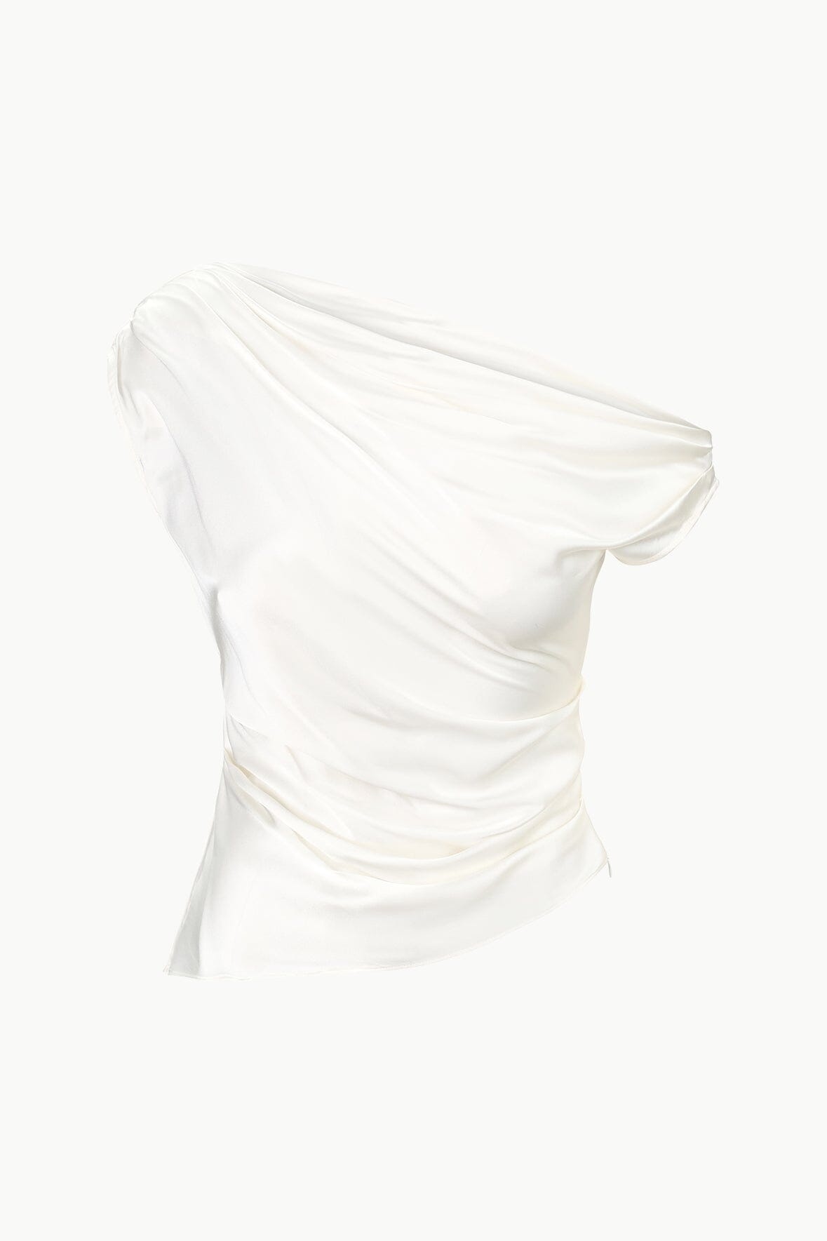 An off-the-shoulder top crafted from a silk satin fabric that offers some stretch for added ease. The Phare Top features a drapey yet fitted silhouette for any occasion. MORE DETAILS - 93% Silk, 7% Spandex - Model is 5'10 and wearing a size 2 - Dry Clean Only