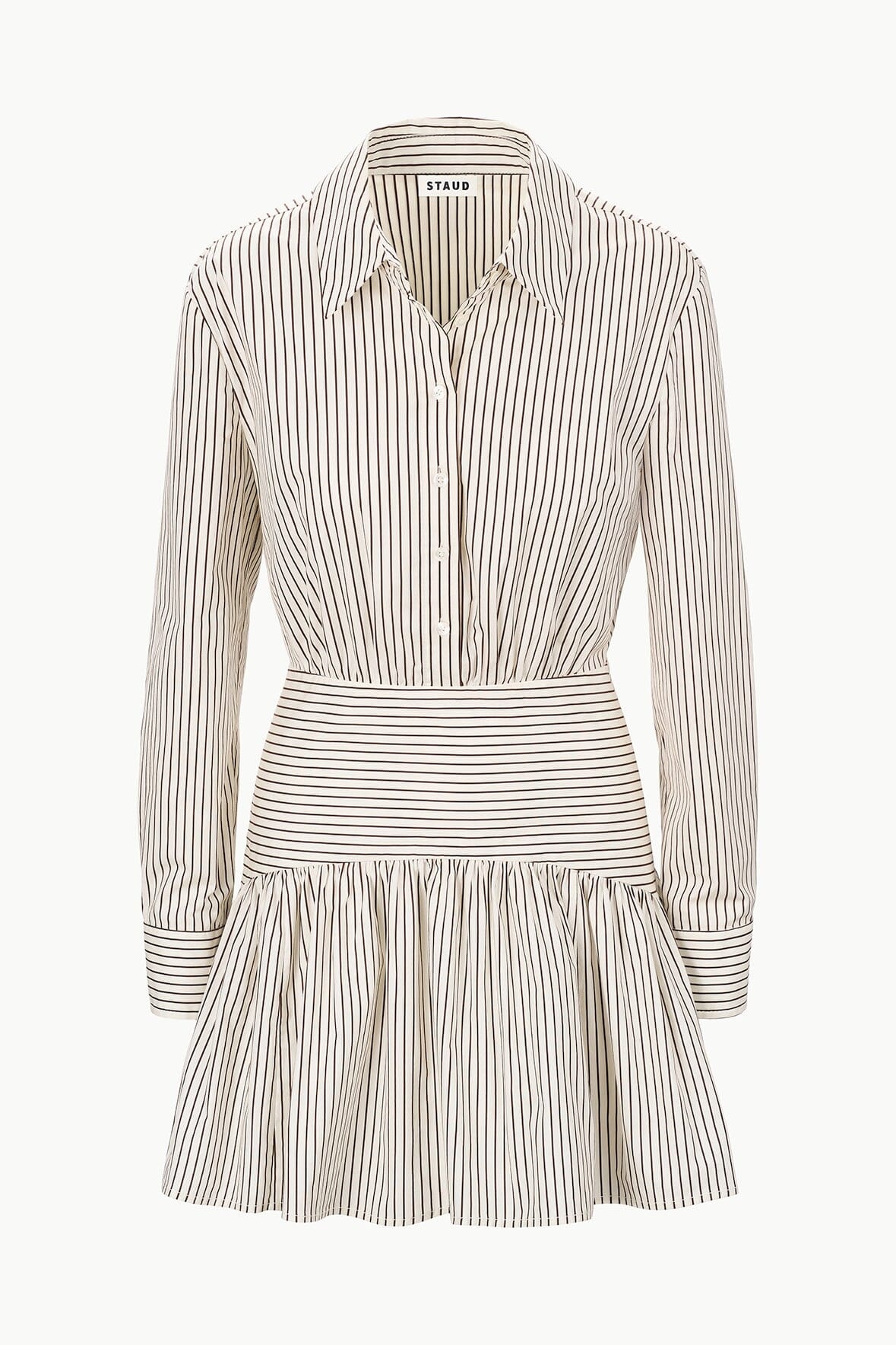STAUD ROCCO MINI DRESS IVORY DARK OAK MICRO STRIPE