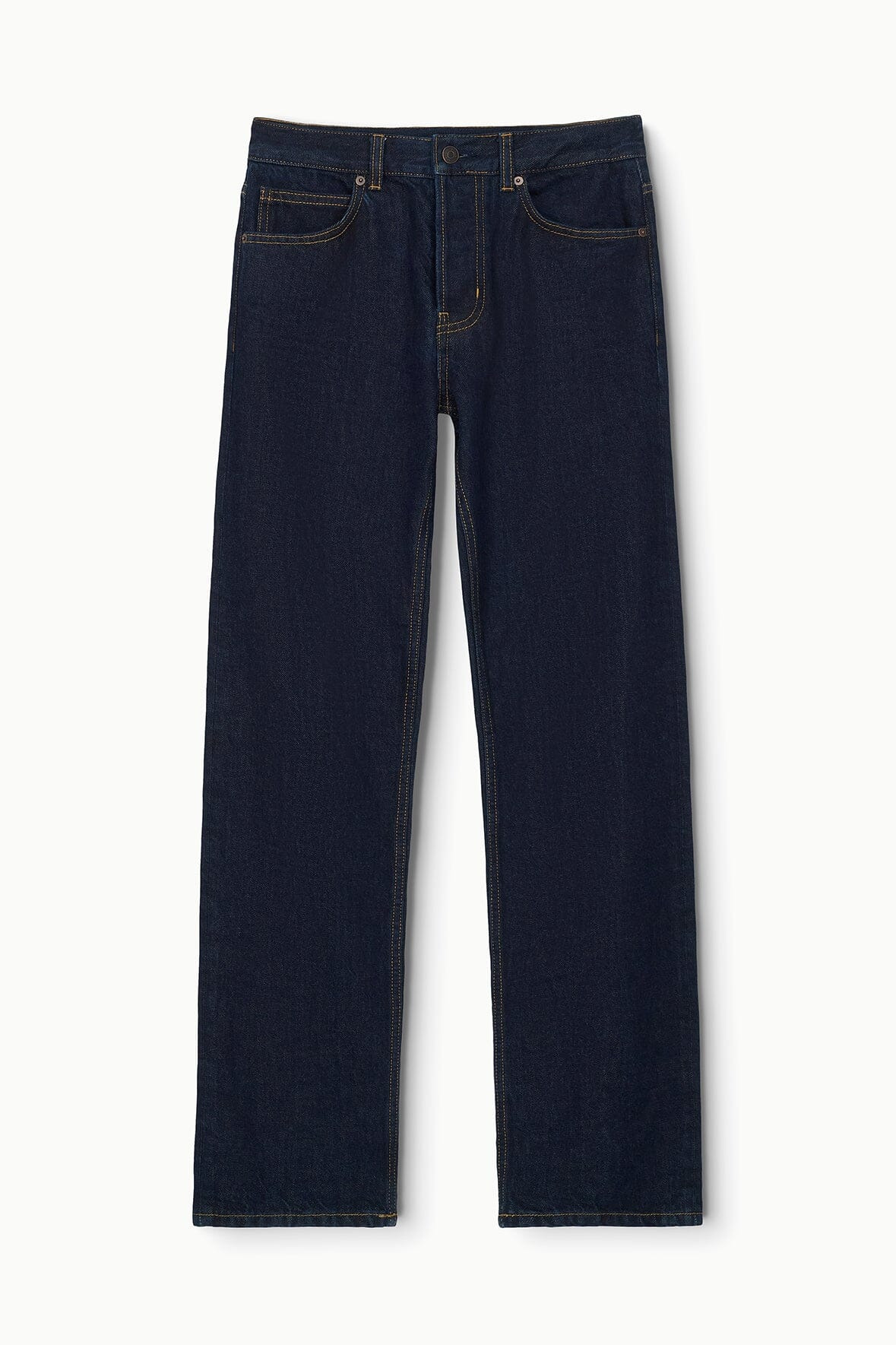 The Teddy Jean is a classic straight-leg silhouette with an easy mid-rise waist. Crafted from Italian rigid denim, it has a flattering V-shaped yoke at the back. Complete with antique-finish hardware and a logo-embroidered button fly. MORE DETAILS - Fabrication: 100% Italian Cotton - Denim Weight: 13oz - Care: Machine wash cold, inside out. Lay flat or hang to dry. - Model is 5'10 and wearing a size 24 with a 33" inseam. - Rise: Mid - Inseam Options: 30” & 33” - Fit: Straight Leg