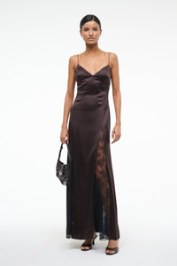 STAUD TRINITY SILK DRESS EARTH