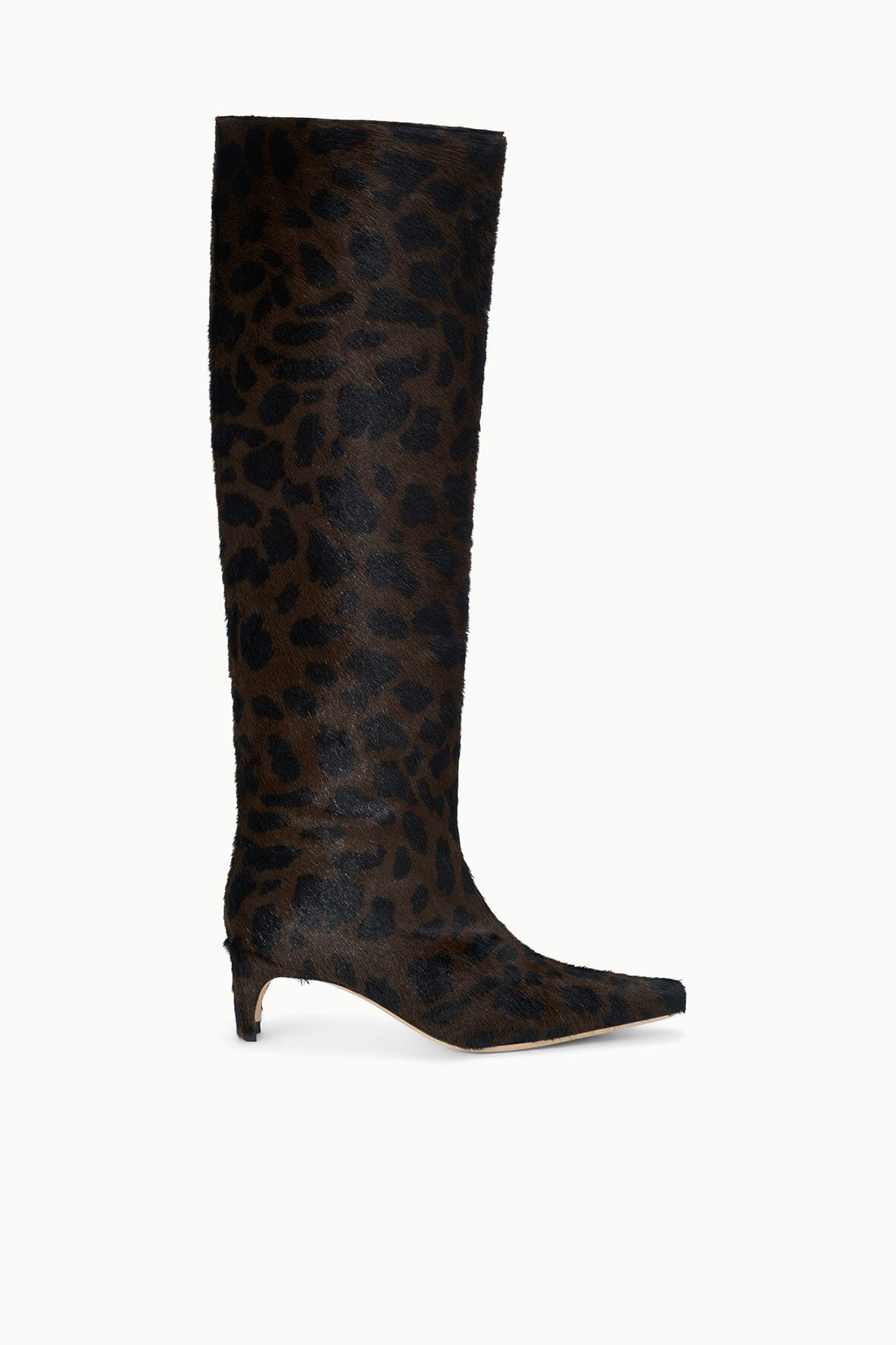 An update to our classic Wally, this boot is a haircalf knee-high boot featuring a pointed toe and a slim heel design. MORE DETAILS - Haircalf Knee High Boot - Upper: 100% Cow Leather, Sole: 90% Cow Leather, 10% Rubber - This style has a narrow fit. If between sizes, consider sizing up.