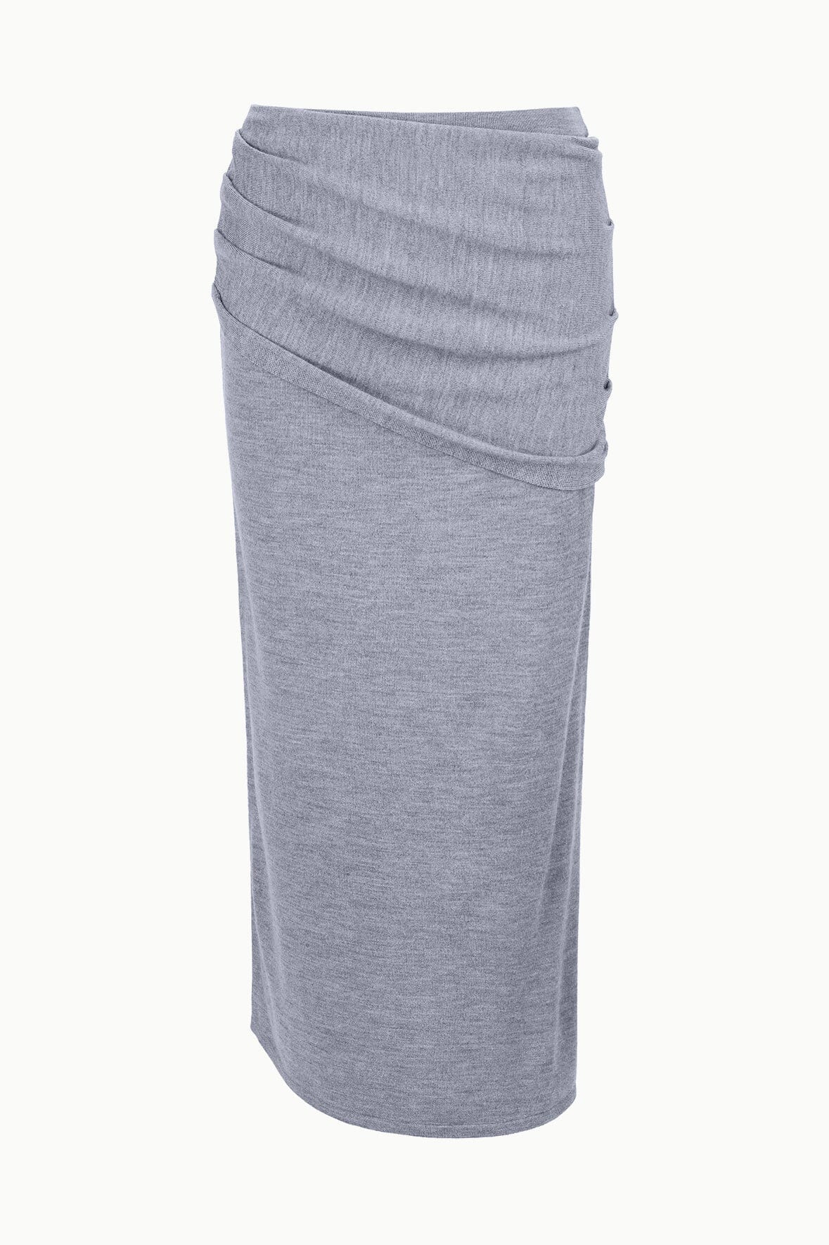 The Wilma Skirt is a knit midi skirt with pre-styled draping at the front. MORE DETAILS - 100% Merino Wool - Model is 5'10 and wearing a size S - Dry Clean Only