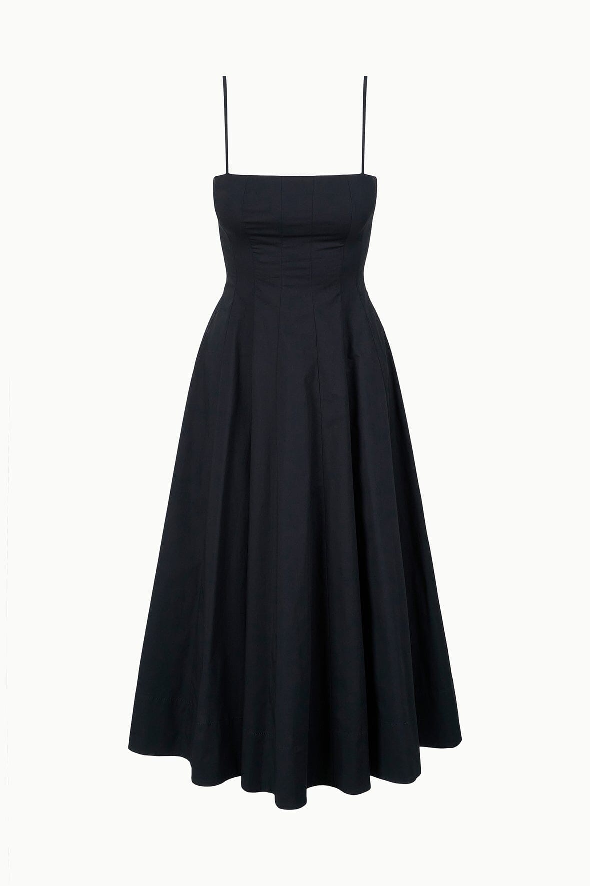 Introducing the Wylie, our newest midi dress crafted in our classic cotton poplin fabric. This style features a corset-style panel construction as seen in the Wells Dress, spaghetti straps and a straight neckline. MORE DETAILS - Self: 98% Cotton, 2% Spandex, Lining: 100% Cotton - Model is 5'9 and wearing a size 4 - Machine Wash Cold. Tumble Dry Low. Or Dry Clean.