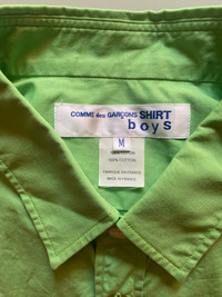 100% cotton long sleeves vivid green shirt, size M, measures shoulders cm 43,5; pit to pit cm. 50; full length in front cm. 67; full length in rear cm. 70; sleeve cm. 60,5. Brand new never worn, without tags. Authentic original.