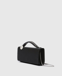 Item 7B0154WP05851000U A versatile essential, this Falabella crossbody clutch bag is constructed from our soft vegan alternative to animal leather. Handcrafted in Italy, it’s elevated with our iconic diamond-cut chain and an engraved logo medallion charm. Keep your phone close-to-hand in the main compartment, and use the slip pocket to stow away your lipstick. - Color: Black - Comfortably fits most phones alongside small daily essentials - Vegan, cruelty-free alternative to animal leather - Signature recycled brass and recyclable aluminum diamond-cut chain - Waxed GOTS-certified organic cotton lacing - Silver studs - One top handle and one crossbody strap - One main compartment - One internal slip pocket - Magnetic snap fastening - Engraved ruthenium logo medallion charm - Handcrafted in Italy Product Care & Fit Advice - Care: Spot clean only with soft damp cloth. - Composition: 100% Polyester - Fit: Comfortably fits all phones alongside small daily essentials. - Size: 8.8 x 4.2 x 1.7 in - Handle drop: 1.3 in - Strap length: 20.4 in - Weighs approximately: 11.2 oz