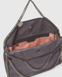 Item 234387W91321236U An enchanting display of duality, this Falabella fold-over tote bag can be styled in two ways – held in one hand like a classic tote or worn across the body. Crafted consciously from a grained vegan alternative to leather and laced with GOTS-certified cotton, the grey tote bag effortlessly complements the Stella woman’s dynamic moods and days. - Colour: Bark - Comfortably fits all tablets and 15" laptops alongside daily essentials - Matte vegan Shaggy Deer fabric with semi-gloss grain - Signature ruthenium recycled brass and aluminium diamond-cut chain - Waxed GOTS-certified organic cotton lacing - Two top handles, and one shoulder strap - One main compartment - One internal slip pocket - Magnetic snap fastening - Engraved ruthenium logo medallion charm - Recycled polyester monogram lining - Handcrafted in Italy Product Care & Fit Advice - Care: Spot clean only with soft damp cloth. - Composition: 100% Polyester - This is a coated fabric - Fits all tablets and 15" laptops. - Size: 37 x 36 x 9cm / 14.5 x 14 x 3.5in. - Handle drop: 11cm - Strap length: 22cm