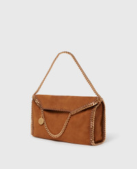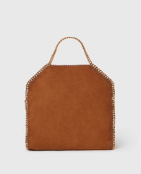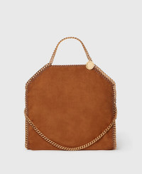 Item 234387WP05435742U An adaptable iteration of our iconic Falabella tote in a vegan alternative to suede, this fold-over tote bag is infinitely wearable. The signature diamond-cut recycled brass and aluminum chain instantly characterizes this dynamic bag. Fully lined with a recycled fabric made from plastic bottles, wear the Falabella fold-over tote in one hand for a classic look or over the shoulder to showcase its duality. - Color: Brandy - Comfortably fits all tablets and 15" laptops alongside daily essentials - Vegan alternative to suede - Signature ruthenium recycled brass and aluminum diamond-cut chain - Waxed GOTS-certified organic cotton lacing - Two top handles, and one shoulder strap - One main compartment - One internal slip pocket - Magnetic snap fastening - Engraved ruthenium logo medallion charm - Recycled polyester monogram lining - Handcrafted in Italy Product Care & Fit Advice - Care: Spot clean only with soft damp cloth. - Composition: 100% Polyamide - Fit: Fits all tablets and 15" laptops alongside daily essentials - Size: 37 x 36 x 9cm - Handle drop: 11cm - Strap length: 22cm - Weighs approximately 0.96kg