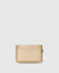 Item 7P0073WP0650T701U Stay organised with our cruelty-free Falabella cardholder, consciously crafted from our metallic, grained vegan Shaggy Deer fabric and outlined with an iconic chain around its border. - Colour: Gold - Matte Shaggy Deer vegan alternative to animal leather finished with an Airlite® NO2 sequestering, air-purifying coating - Signature recycled brass and recyclable aluminium diamond-cut chain - Waxed GOTS-certified organic cotton lacing - Coin pocket - Four card slots - Zip fastening - Engraved logo medallion made from zero-waste zamak - Fully lined with recycled materials - Handcrafted in Italy - All of our shoes and accessories are made from non-leather materials in keeping with our cruelty-free ethos. Product Care & Fit Advice - Care: Spot clean only with soft damp cloth. - Composition: 100% Polyester - This is a coated fabric - Fit: Comfortably fits up to four cards. - Size: 12 x 8cm