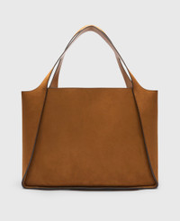Item 502793WP05075742U The Stella Logo tote bag is characterized by a timeless slouchy yet structured silhouette. Crafted in Italy from our luxury vegan alternative to leather, the bag has a studded, circular logo at the front and can be carried by hand or over the shoulder. Store your laptop in the spacious main compartment, while the detachable pouch means essentials are never out of reach. - Color: Brandy - Comfortably fits all laptops and tablets alongside daily essentials. - Vegan alternative to animal suede sourced from recycled materials - Studded Stella McCartney logo on front - Contrast single topstitching - Two top handles - One main compartment - Detachable pouch inside - Recycled nylon lining - Engraved ruthenium logo medallion charm - Handcrafted in Italy Product Care & Fit Advice Care: Spot clean only with soft damp cloth. Composition: 100% Polyamide - Fit: Comfortably fits all laptops and tablets alongside daily essentials. - Size: 15.7 x 12.4 x 5.9 in - Strap length: 10.2 in - Weighs approximately 22.3 oz