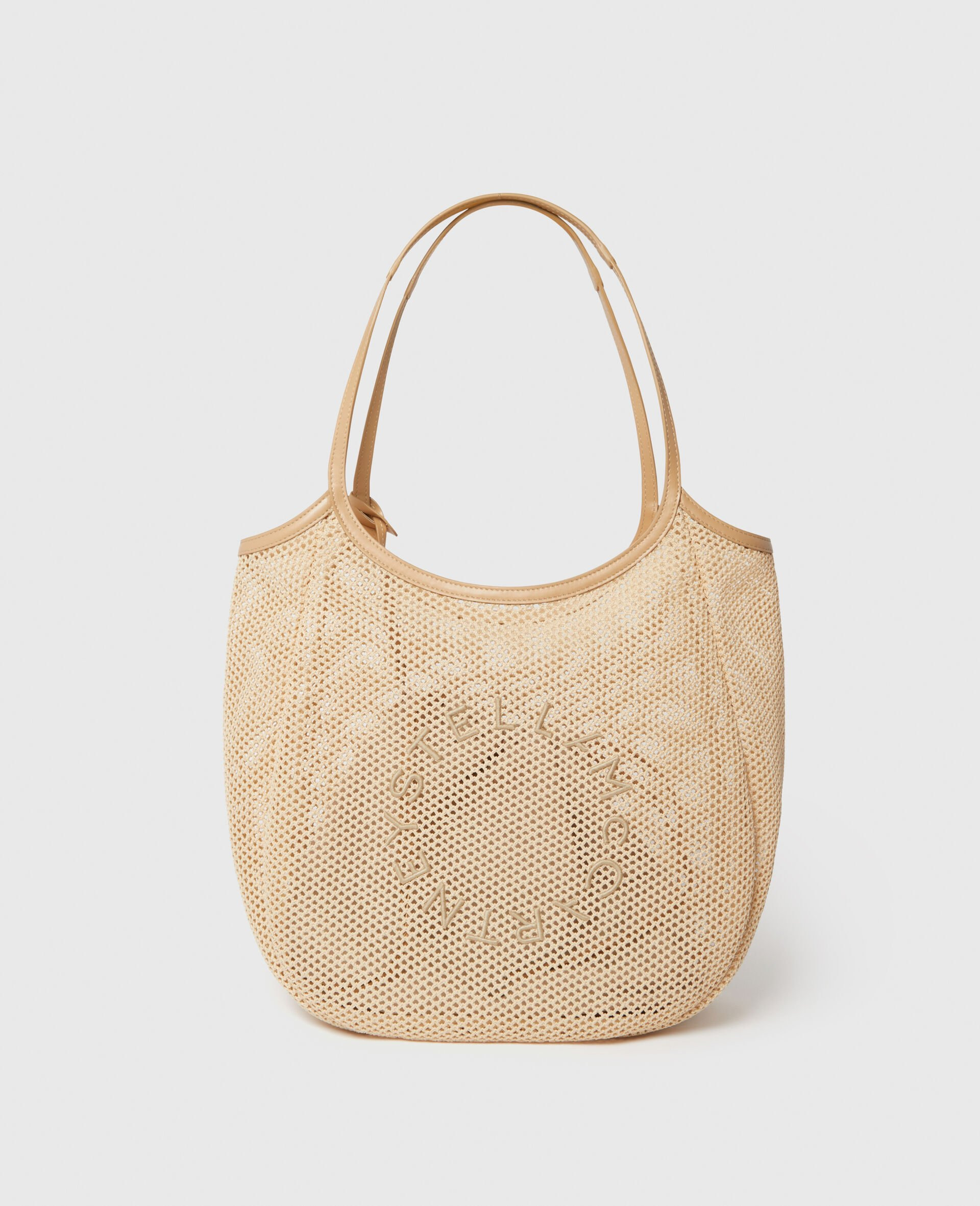 Item 7B0170WP05952505U This contemporary rendition of our classic hobo tote becomes a new day-to-day essential in mesh. Handwoven from recycled materials and trimmed with our vegan alternative to animal leather with an aged finish, it’s embroidered with a circular Stella McCartney logo and hangs two shoulder straps. Generously sized, there’s room for your laptop, phone and other daily essentials inside. - Color: Beige - Comfortably fits 15” laptops alongside daily essentials - Cruelty-free, vegan alternative to animal leather trims - Embroidered Stella McCartney logo on front - Contrast single topstitching - Two shoulder straps - One main compartment - Detachable pouch inside - Netting made from recycled materials - Handcrafted in Italy - All of our shoes and accessories are made from non-leather materials in keeping with our cruelty-free ethos. Product Care & Fit Advice - Care: Spot clean only with soft damp cloth. - Composition: 86% Polyester, 14% polyamide - Fit: Comfortably fits 15” laptops alongside daily essentials - Size: 18.5 x 15.7 x 4.7 in - Strap length: 12.6 in - Weighs approximately 18.8 oz