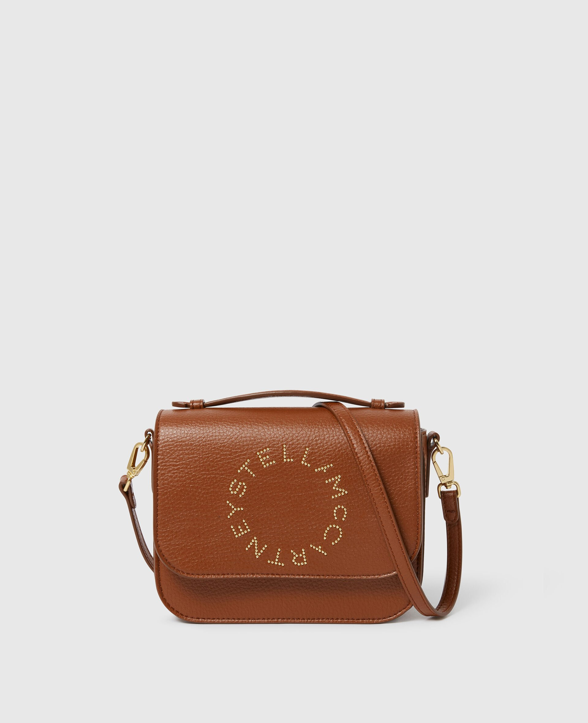 Item 7B0140WP05632215U Characterized by its messenger silhouette, this Logo bag is an ideal wear-anytime accessory. The crossbody is consciously crafted from our vegan alternative to animal leather, with a studded Stella McCartney logo on the front flap and an adjustable strap made from recycled materials. - Color: Auburn - Comfortably fits all phones, small and medium wallets alongside daily essentials - Smooth vegan alternative to animal leather sourced from recycled materials Top handle - Studded Stella McCartney circular logo on front - Tonal single topstitching - Adjustable strap - Magnetic snap fastening flap main compartment - One internal slip pocket - Vegan alternative to suede lining - Handcrafted in Italy Product Care & Fit Advice - Care: Spot clean only with soft damp cloth. - Composition: 100% Polyamide - This is a coated fabric - Fit: Fits all phones and all wallets alongside daily essentials - Size: 7.8 x 5.9 x 2.7 in - Strap length: 20.8-22.8 in - Handle drop: 0.9 in - Weighs: 14.4 oz