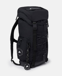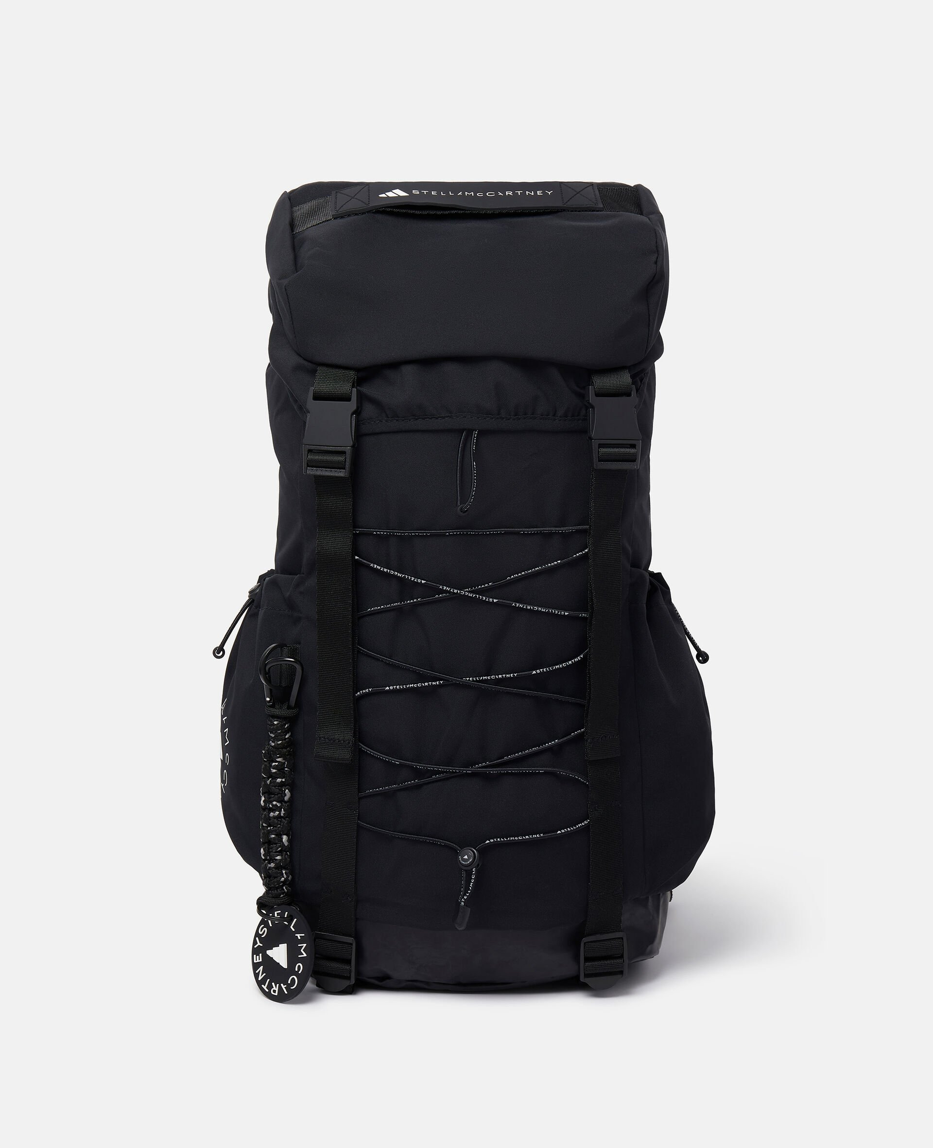 Item 9408329999991089U Move with purpose in this practical adidas by Stella McCartney backpack. Consciously crafted from recycled materials with a matte finish, the backpack is equipped with a padded laptop compartment and plenty of pockets to organize everyday essentials. - Color: Black - Matte adidas Primegreen fabric made with recycled materials - adidas by Stella McCartney logo silicone handle at top -Two padded shoulder straps Internal slip pockets Internal padded laptop compartment - One external zipper pocket - Two side water bottle pockets - One buckle fastening main compartment - Detachable Stella McCartney silicone logo disc from buckle - Fully lined Product Care & Fit Advice Care: Machine wash on a cold delicate cycle, mild detergent only, do not bleach, do not tumble dry, do not dry clean, do not use fabric softener Composition: 73% PA6-REC, 27% elastane Size: One size