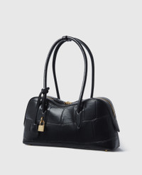 Item 7B0138WP05571000U Reimagined for Fall 2025 in a crocodile-embossed texture, the Stella McCartney Ryder bag is handcrafted by artisans in Italy from cruelty-free alternatives to animal leather using recycled, apple and grape-based innovations. The sculptural silhouette honors the strength, beauty and power of Stella’s favorite animal – the horse. The vegan Ryder bag features a logo-engraved padlock and effortlessly fits a phone, wallet and daily essentials. - Color: Black - Comfortably fits all phones and wallets alongside small daily essentials - UPPEAL™ apple-based vegan alternative to leather coated fabric - GOTS-certified Canopy hemp lining - Two top handles and trims in VEGEA, a grape-based alternative to leather - One main compartment - One internal slip pocket - Zipper fastening - Logo-engraved brass padlock - Brass hardware - Handcrafted in Italy - All of our shoes and accessories are made from non-leather materials in keeping with our cruelty-free ethos. Product Care & Fit Advice - Care: Spot clean only with soft damp cloth. - Composition: 75% Polyester, 25% cotton - This is a coated fabric - Fit: Fits all phones and wallets alongside small daily essentials. - Size: 14.1 x 6.8 x 3.9 in - Handle drop: 8.2 in - Weighs approximately: 23.6 oz
