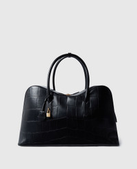 Item 7B0148WP05571000U The Ryder weekend bag is handcrafted by artisans in Italy from crocodile-embossed cruelty-free alternatives to animal leather using recycled and apple-based innovations. The sculptural silhouette honors the strength, beauty and power of Stella’s favorite animal – the horse. The vegan Ryder holdall bag features a logo-engraved padlock and effortlessly fits your laptop, daily essentials and travel necessities. - Color: Black - Comfortably fits all laptops, iPads and weekend essentials - Crocodile-embossed - UPPEAL™ cruelty-free, vegan alternative to animal leather - GOTS-certified Canopy hemp lining - Two top handles and trims in VEGEA, a grape-based alternative to leather - One main compartment - One internal slip pocket - Zipper fastening - Logo-engraved brass padlock - Brass hardware - Handcrafted in Italy - All of our shoes and accessories are made from non-leather materials in keeping with our cruelty-free ethos. Product Care & Fit Advice - Care: Spot clean only with soft damp cloth. - Composition: 75% Polyester, 25% cotton - This is a coated fabric - Fit: Comfortably fits all laptops and tablets alongside weekend essentials. - Size: 23.8 x 13.7 x 8.6 in - Handle drop: 10.6 in - Weighs approximately: 65.2 oz