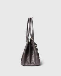 Item 7B0176WP06291203U This Stella McCartney Ryder tote is handcrafted by artisans in Italy from a vegan, cruelty-free alternative to ostrich leather. The sculptural silhouette honours the strength, beauty and power of Stella’s favourite animal – the horse. The vegan bag features a logo-engraved padlock and a generous, zip-fastened accordion compartment that fits most laptops alongside phones and other daily essentials. - Colour: Slate - Comfortably fits all phones and wallets alongside small daily essentials - YATAY M vegan alternative to ostrich leather - GOTS-certified Canopy hemp lining - Two top handles - One accordion main compartment - One internal slip pocket - Zip fastening - Logo-engraved padlock - Handcrafted in Italy - All of our shoes and accessories are made from non-leather materials in keeping with our cruelty-free ethos Product Care & Fit Advice - Care: Spot clean only with soft damp cloth. - Composition: 100% Polyester - This is a coated fabric - Fit: Fits most laptops, tablets and daily essentials. - Size: 45 x 19 x 24.5cm