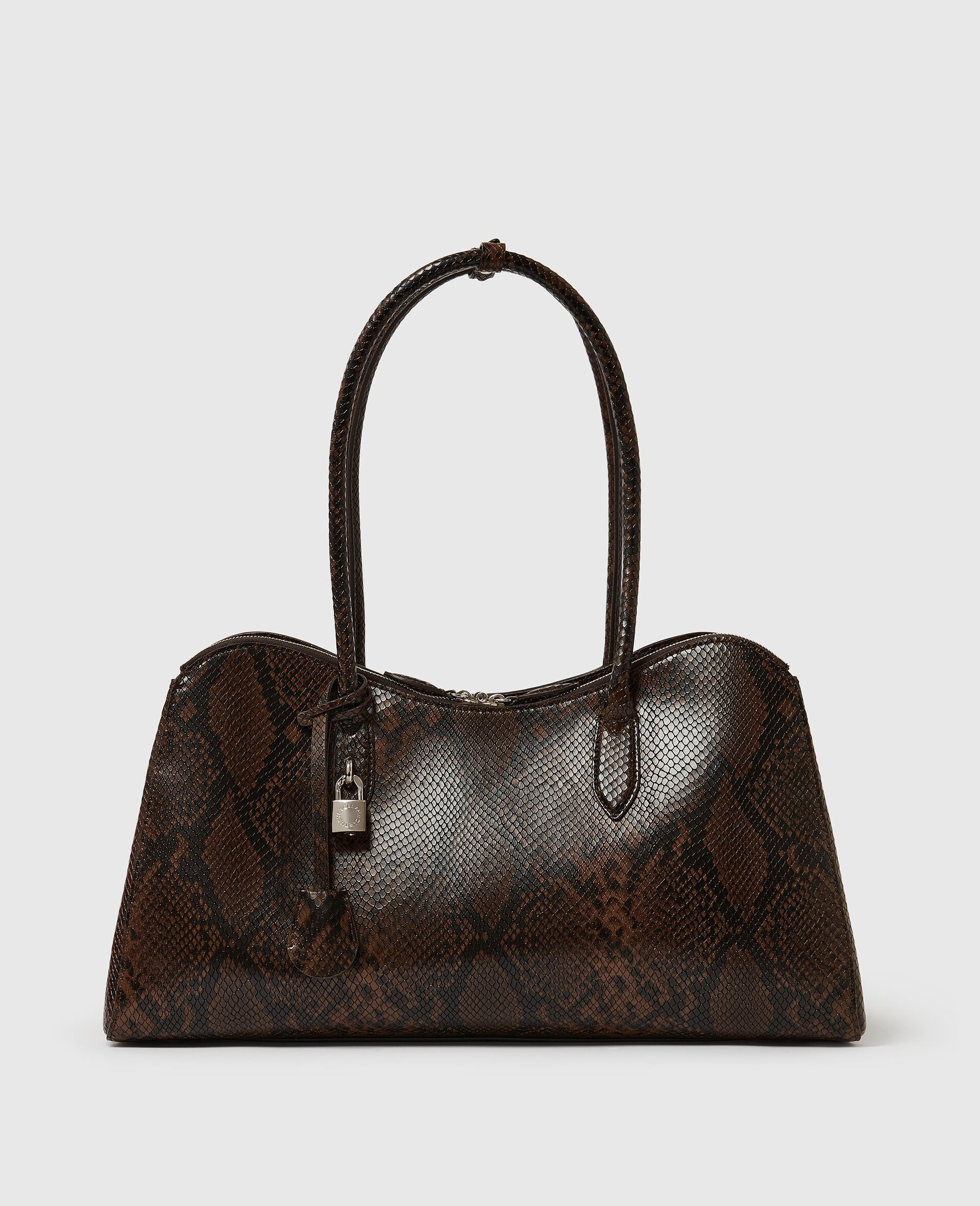 Item 7B0176WP06302035U Reimagined for Winter 2025 as a tote bag, the Stella McCartney Ryder is handcrafted by artisans in Italy from cruelty-free snakeskin alternative, mycelium-based YATAY M. The sculptural silhouette honors the strength, beauty and power of Stella’s favorite animal – the horse. The vegan bag features a logo-engraved padlock and a generous, zipper-fastened accordion compartment that fits most laptops alongside phones and other daily essentials. - Color: Espresso - Comfortably fits all phones and wallets alongside small daily essentials - YATAY M mycelium-based cruelty-free, vegan alternative to snakeskin - GOTS-certified Canopy hemp lining - Two top handles - One accordion main compartment - One internal slip pocket - Zipper fastening - Logo-engraved brass padlock - Brass hardware - Handcrafted in Italy - All of our shoes and accessories are made from non-leather materials in keeping with our cruelty-free ethos. Product Care & Fit Advice - Care: Spot clean only with soft damp cloth. - Composition: 100% Polyester - This is a coated fabric - Fit: Fits most laptops, tablets and daily essentials. - Size: 17.7 in × 7.5 in × 9.6 in - Strap length: 11 in