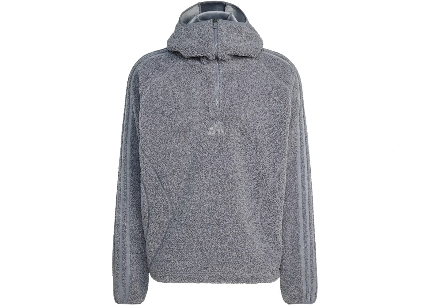 adidas Borg Fleece Teamgeist 1/4 Zip Hoodie Grey Strata