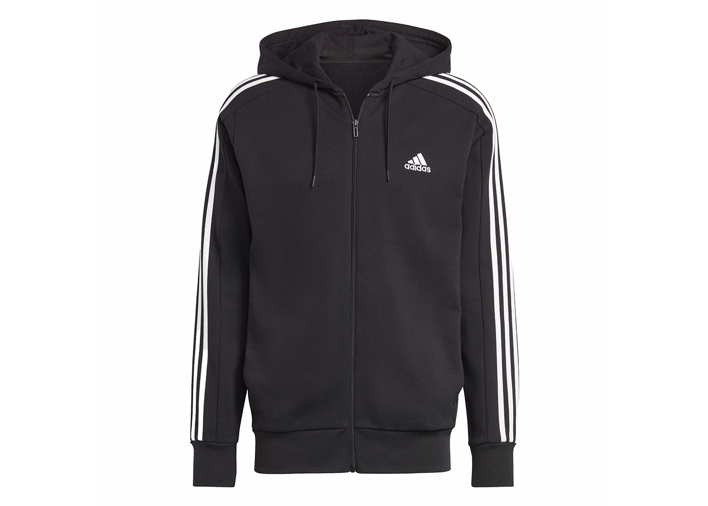 adidas Essentials French Terry 3-Stripes Full-Zip Hoodie Black/White