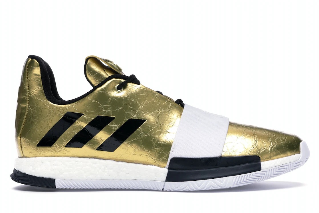 The adidas Harden Vol. 3 Imma Star is a signature basketball shoe designed in collaboration with NBA superstar James Harden. Revered for its eye-catching design and performance-oriented features, this shoe pays homage to Harden's on-court domination. It features a lightweight and breathable mesh upper, ensuring optimal ventilation, and employs the brand’s iconic Boost cushioning technology in the midsole for responsive energy-return. A rubber outsole with a traction pattern enhances grip and stability, while a TPU midfoot strap and customizable lacing system contribute to a secure fit. A bold and distinctive Metallic Gold colorway comprises a majority of the shoe, over which the 3-Stripes pattern appears in black. What our experts find most appealing about the adidas Harden Vol. 3 Imma Star is Harden's personal branding and signature details which add a touch of individuality. This shoe retailed for an initial cost of $140 when it was first released on April 6th, 2019. - Style G54026/EE3955 - Colorway Gold Metallic/Footwear White/Core Black - Retail Price 140 - Release Date 2019-04-06 - Featured false - Product Line adidas Harden