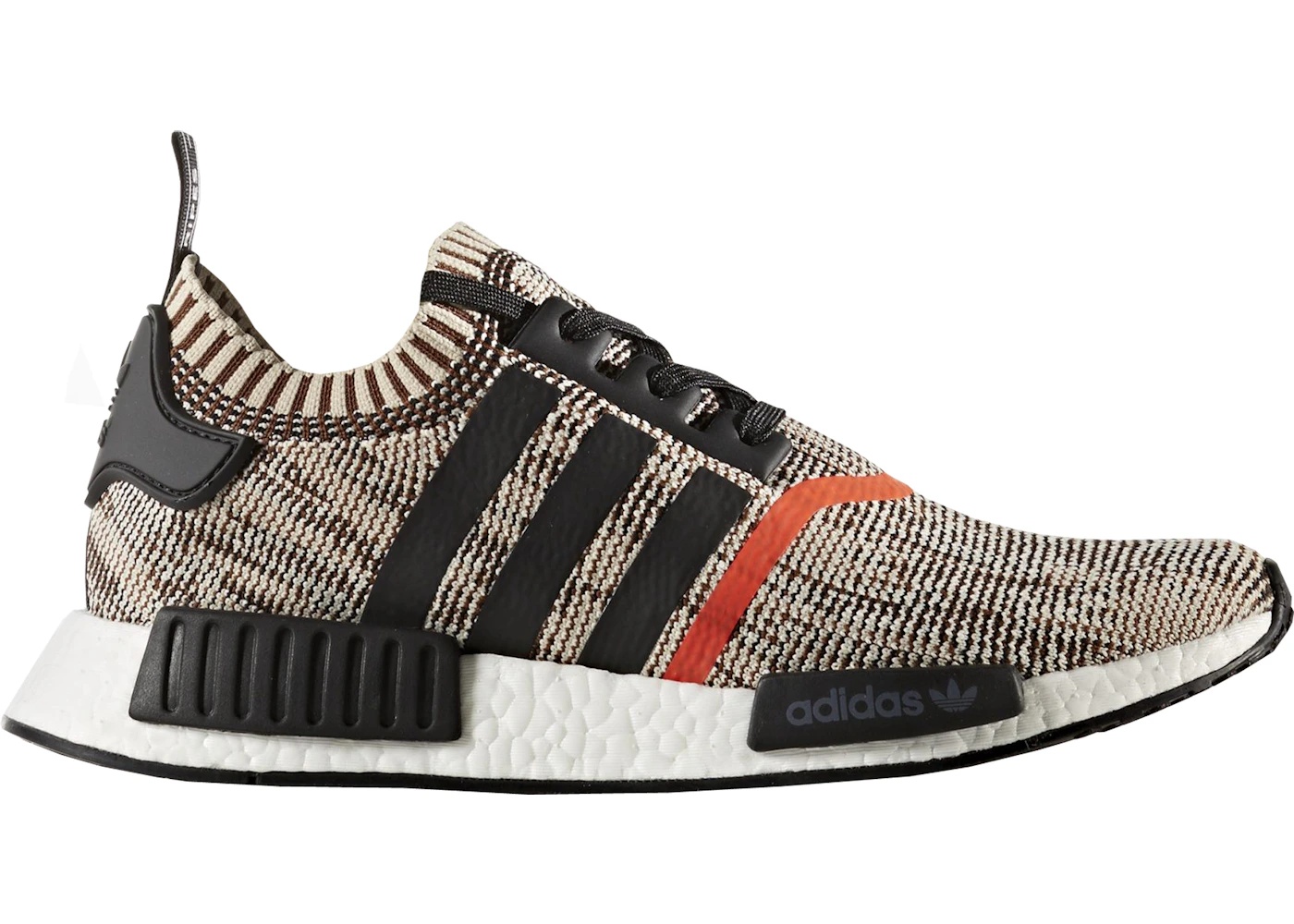 The adidas NMD R1 AI Camo Black Orange is a very limited-edition member of the NMD R1 family, with only 900 pairs having ever been released to the public. This shoe features a PrimeKnit upper that delivers lightweight and comfortable breathability. The adidas brand's trademark Boost technology is employed to offer responsive cushioning and a high energy return to each step. Distinctive EVA plugs on the midsole add stability and a futuristic look, while a rubber outsole provides durable traction. A pull tab on the heel allows for easy on/off wear, and a standard lacing system provides a secure fit. What our experts love most about the adidas NMD R1 AI Camo Black Orange is the unique colorway, which employs a Talc-colored Camo background overlayed with the brands distinctive 3-Stripes in black. This shoe originally retailed with a price tag of $170 on October 20, 2017. - Style CQ1862 - Colorway Talc/Black/Black - Retail Price 170 - Release Date 2017-10-20 - Featured false - Product Line adidas NMD