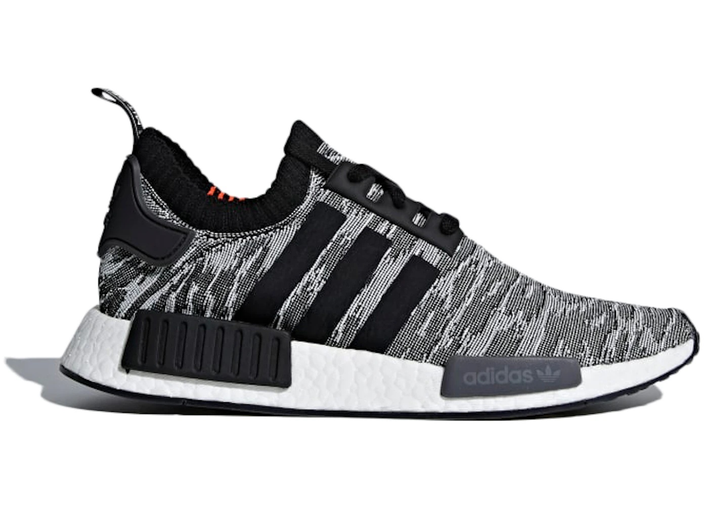 The adidas NMD R1 Black Glitch is a fusion of the NMD R1 and its successor, the NMD R2. While maintaining the R1's overall shape, this shoe adopts the iconic camo pattern initially designed for the R2, creating a distinctive two-toned look. The NMD R1 boasts a grey base adorned with varying black spots and lines. Notably, most of the shoe's components are in black, including the 3-stripes branding, rear EVA pods, laces, and heel cap. The NMD R1 Black Glitch incorporates Primeknit threads in shades of black, grey, and hints of white meticulously woven together to form the shoe's upper. What our experts love about the adidas NMD R1 Black Glitch is the grey forward EVA plug and the six knitted lines within the inner ankle collar. The vibrant Solar Red hue provides great contrast to the overall design. The sneaker was released 15th March 2018 for $170. - Style CQ2444 - Colorway Core Black/Core Black/Solar Red - Retail Price 170 - Release Date 2018-03-15 - Featured false - Product Line adidas NMD